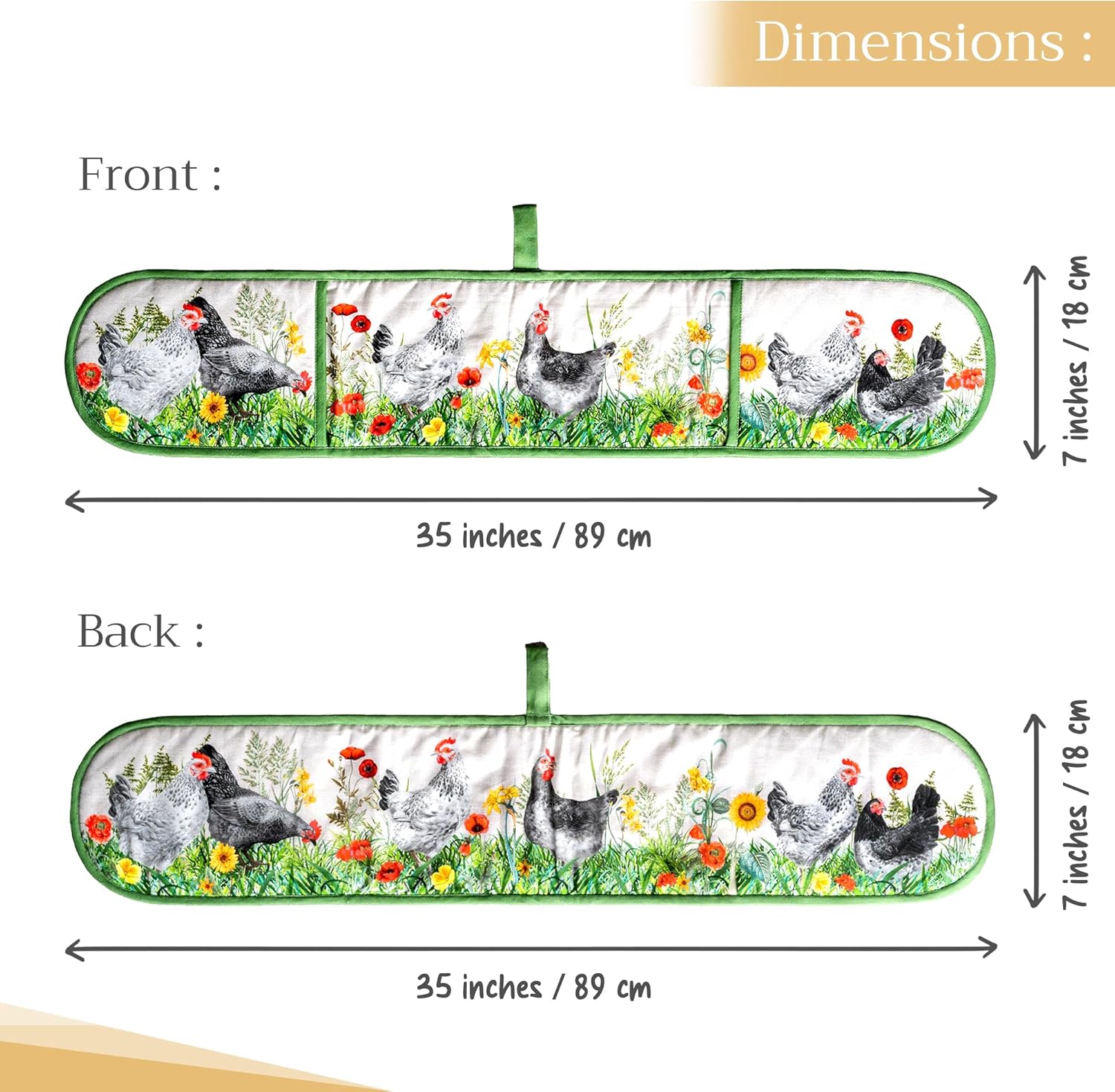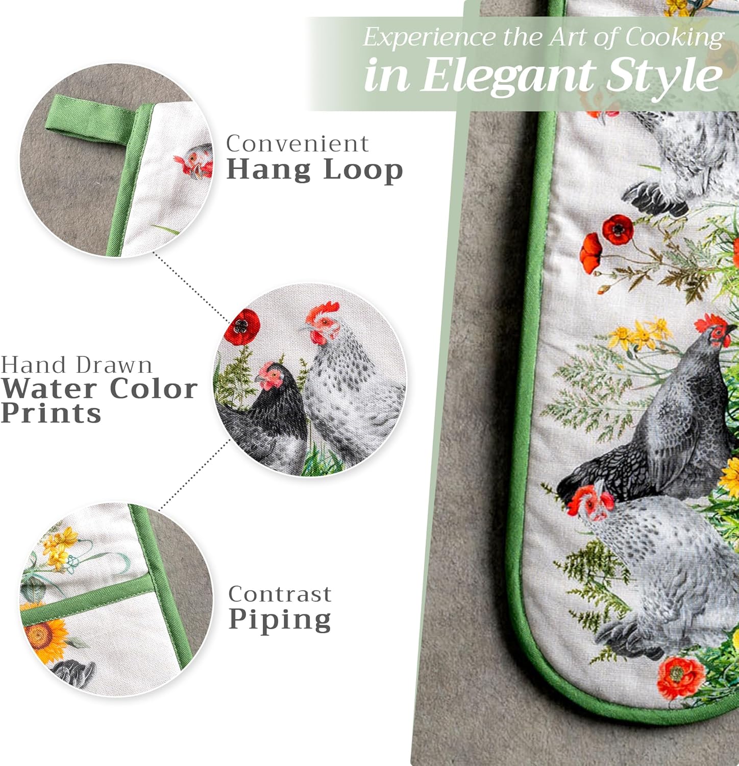 Maison d' Hermine Double Oven Mitts 100% Cotton 7"x35" Double Oven Mitt Heat Resistant BBQ Cooking Gloves with Loop, Baking, Grilling, Home, Kitchen, Handling Hot Pans Spring Summer (Basse Cour)
