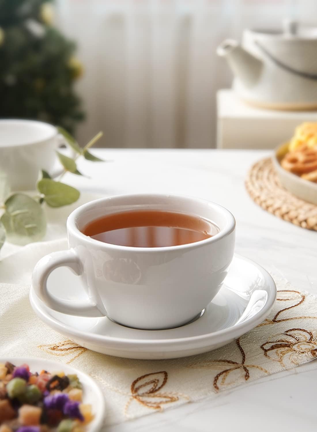 • What Will You Get: Each Cup: Dia:4"(without handle), H:2.6". Normal capacity:8 oz; Full capacity:9 oz. Each saucer measures 6.1 inches in diameter, have enough space for a coffee spoon and biscuit while enjoying a cup of lungo coffee