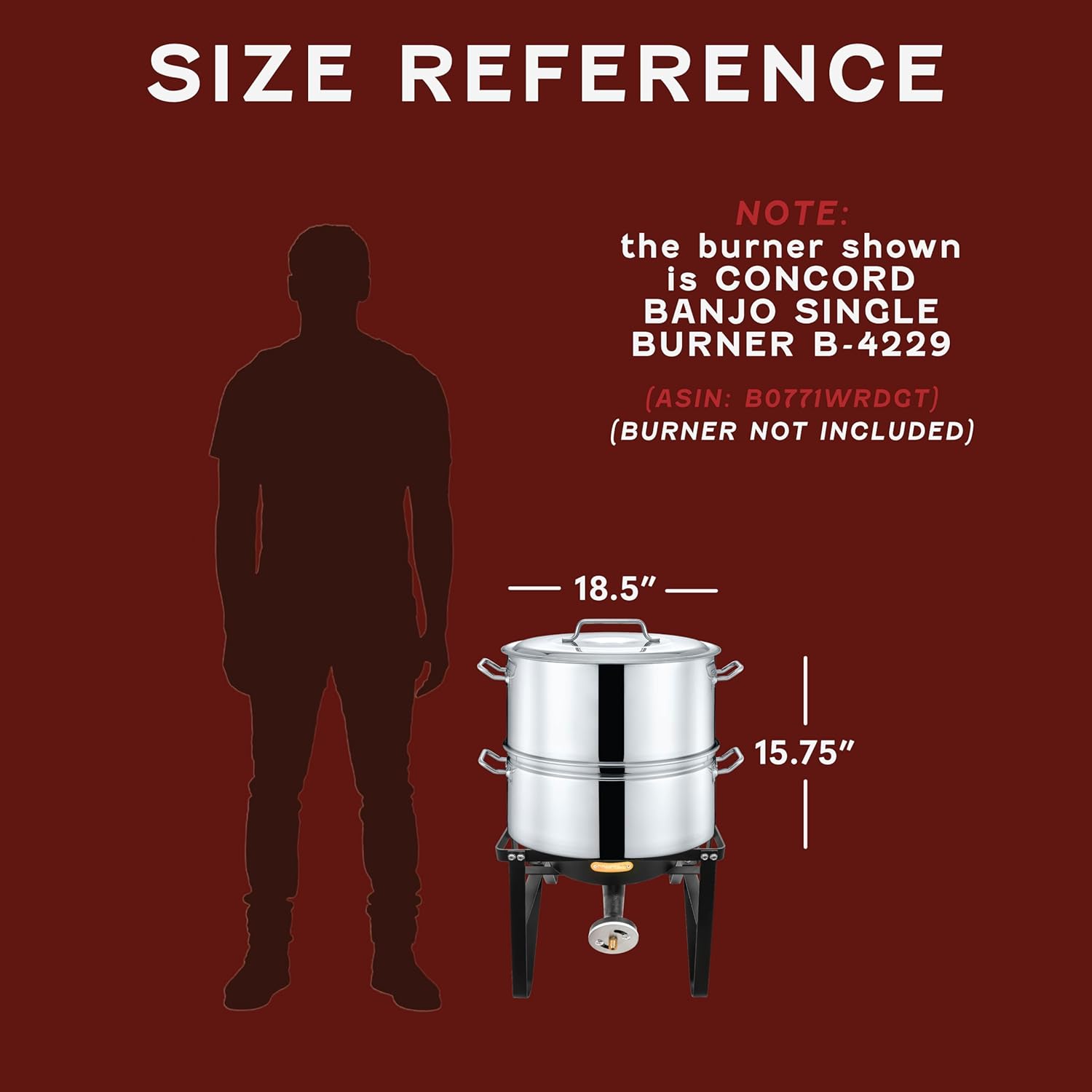 CONCORD Extra Large Outdoor Stainless Steel Stock Pot Steamer and Braiser Combo. Great for steaming oysters, crab, crawfish and more (40 QT)