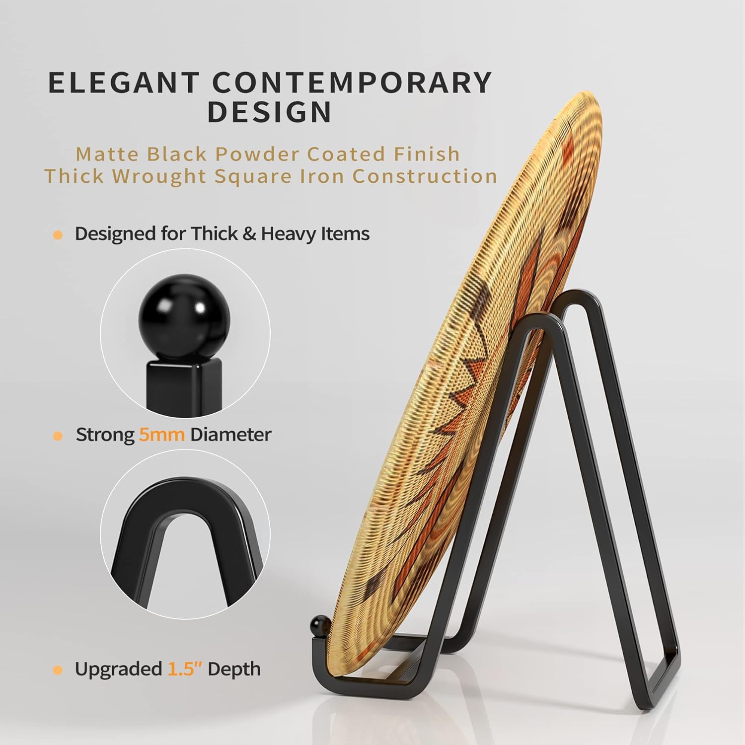 • STRENGTH AND STURDINESS: - Being made of high-quality thick metal square wire, this plate display stands has a wrought iron construction. It is strong enough to firmly hold the decorative plates, cutting boards, tiles, plaques, platters, vinyl records, calendars, canvas, diplomas, cookbooks, and etc.