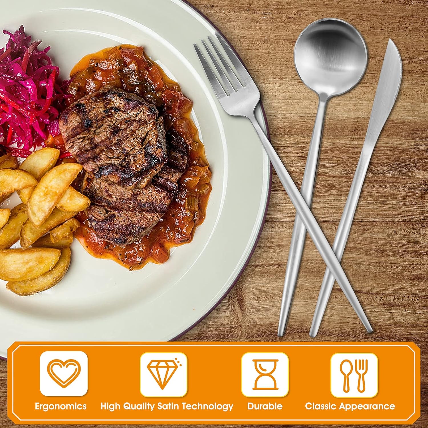 Matte Satin Finish Silverware Set, 40-Piece Tableware Cutlery Set, Utensils Set Service for 8, Dishwasher Safe