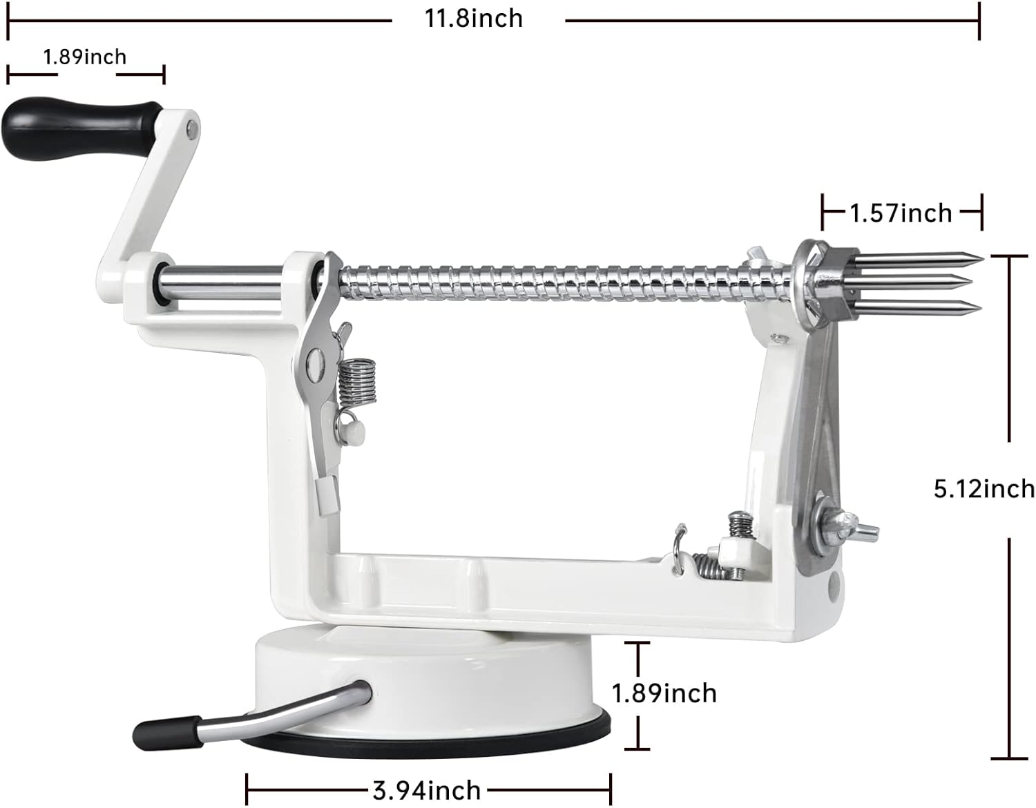 Apple Peeler, Slicer Corer Potato Peelers 3 In 1, Stainless Steel Heavy Duty Suction Cup Base And 7 Extra Blades (White)