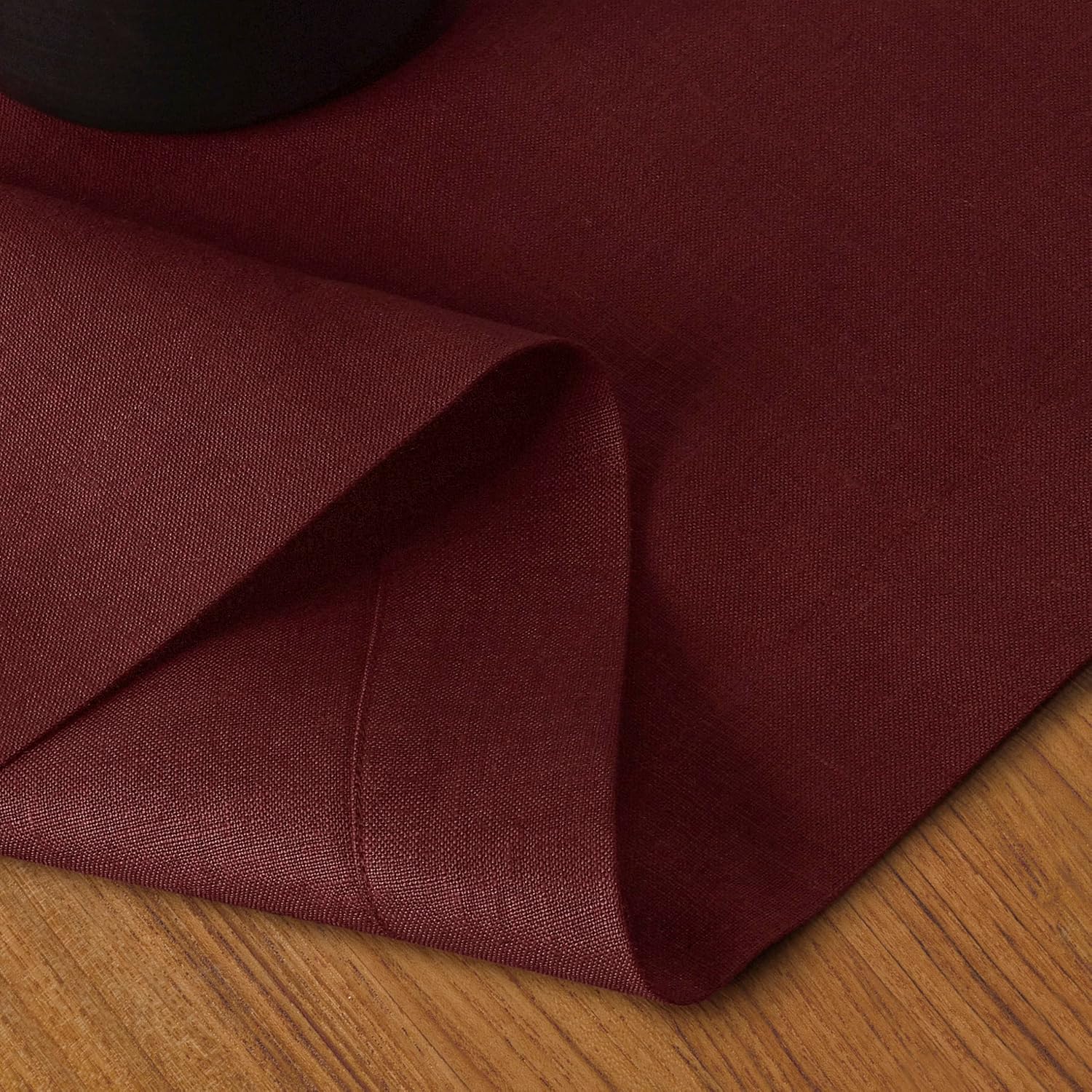 • PREMIUM EUROPEAN LINEN - This dark red table runner is made from 100% European flax linen, not blended with cheaper materials like cotton or polyester. Pure linen is an exceptionally durable midweight, hypoallergenic (good for people with allergies) fabric which outperforms cotton in tensile strength and abrasion resistance.