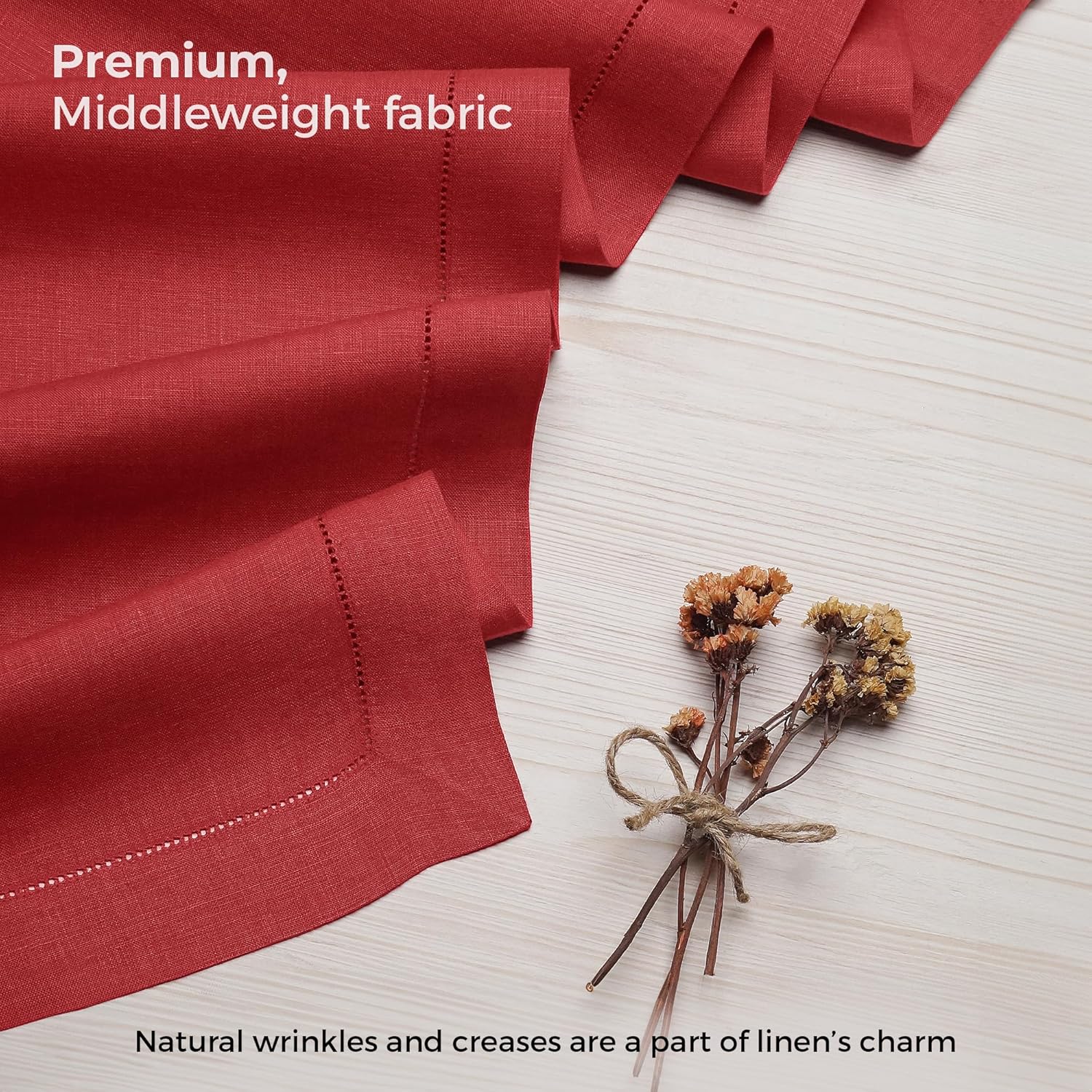 • PREMIUM EUROPEAN LINEN - This bright red table runner is made from 100% European flax linen, not blended with cheaper materials like cotton or polyester. Pure linen is an exceptionally durable midweight, hypoallergenic (good for people with allergies) fabric which outperforms cotton in tensile strength and abrasion resistance.