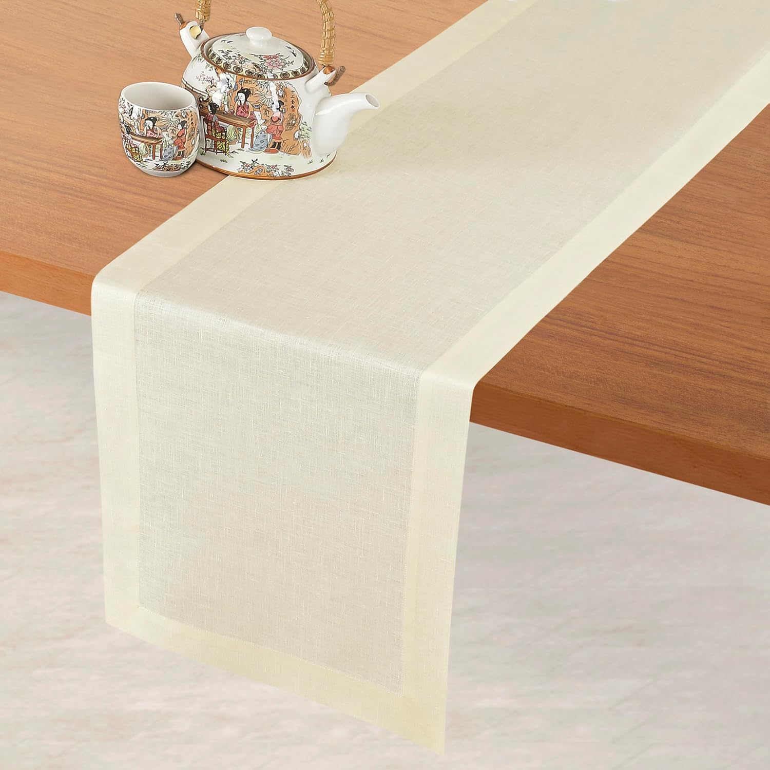 • PREMIUM EUROPEAN LINEN - This cream table runner is made from 100% European flax linen, not blended with cheaper materials like cotton or polyester. Pure linen is an exceptionally durable midweight, hypoallergenic (good for people with allergies) fabric which outperforms cotton in tensile strength and abrasion resistance.