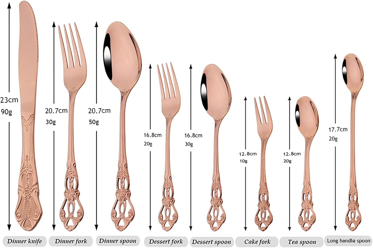 • 【Vintage & Royal】 - Palace silverware tableware with beautiful patterns, retro luxury design. Comfortable hand-holding curve enhances your dining experience, while adding beauty to your home and kitchen dining room. Easy To Clean.