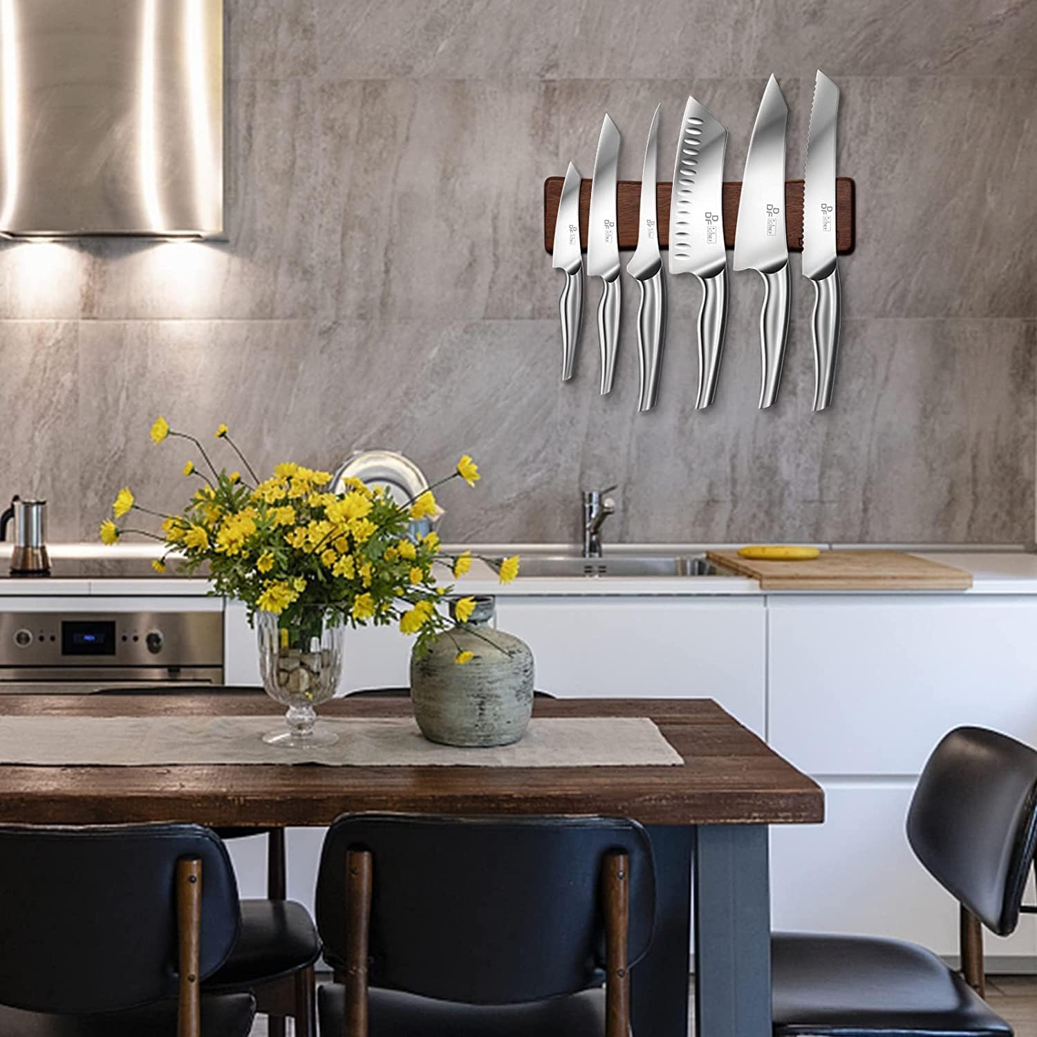 DDF iohEF Knife Set with Knife Strip, 8 Piece Professional Kitchen Knife Set, Japanese High Carbon Stainless Steel Chef Knives Set with Magnetic Knife Holder for Wall