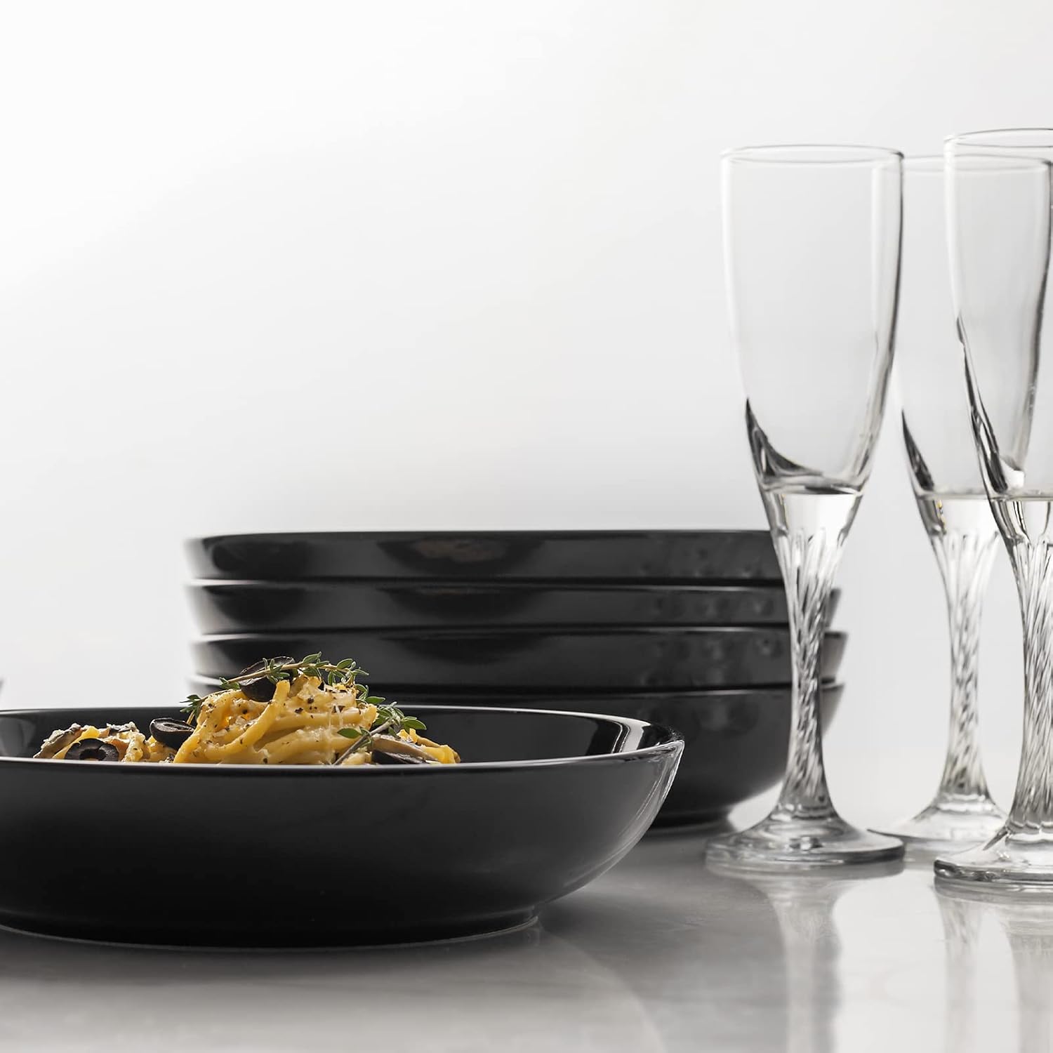 Y YHY Pasta Bowls 30oz, Large Salad Serving Bowls, Shallow Soup Bowls, Porcelain Pasta Bowls Set of 6, Microwave Dishwasher Safe, Black