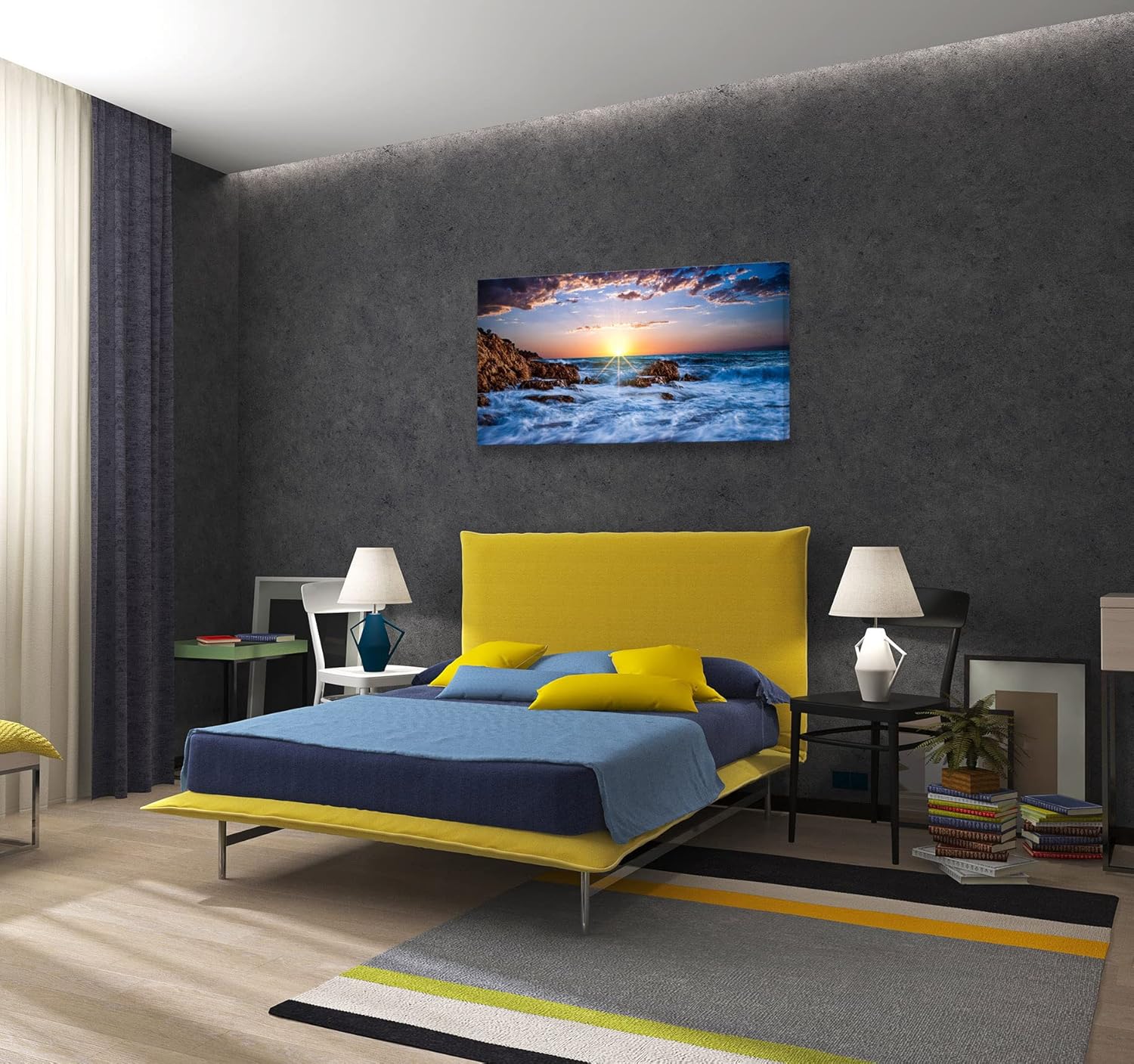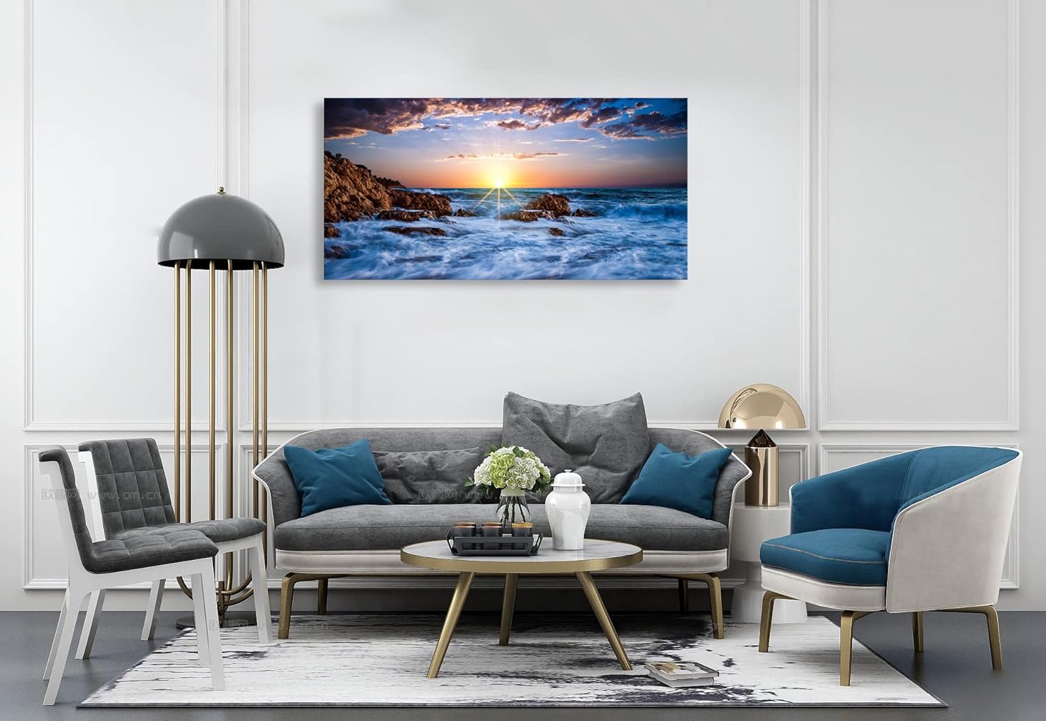 Muolunna BK05850 Wall Art Decor Canvas Print Picture Sunset Blue Ocean 1 Panel Sea Waves Scenery Painting Artwork for Office Wall Decor Home Decoration Stretched and Framed Ready to Hang 20x40inch