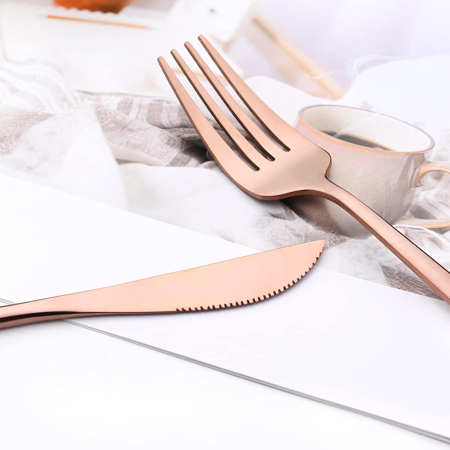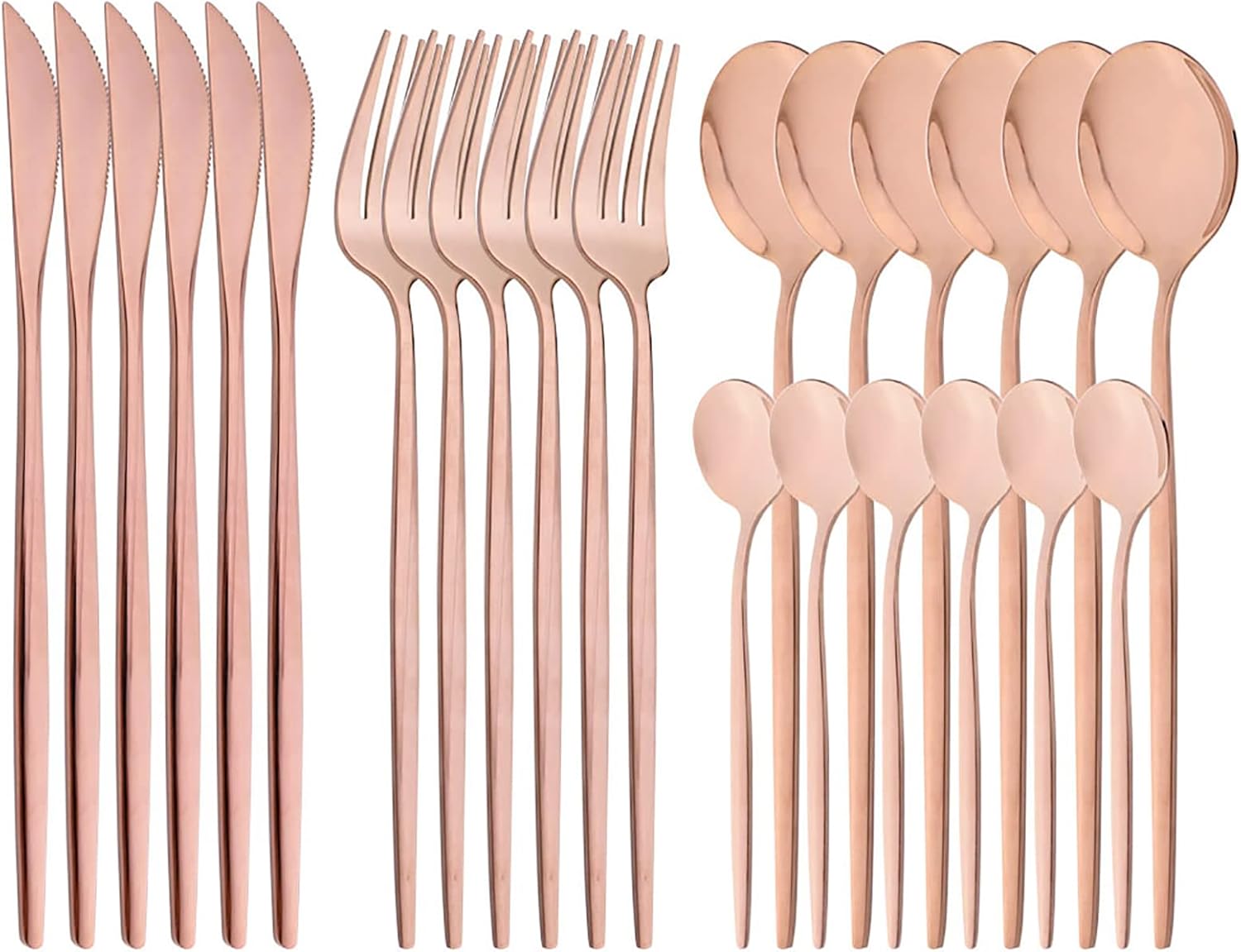 24-Piece Mirror Copper Polished Flatware, 18/0 Stainless Steel Dinnerware Set Include Knife Fork Spoon Teaspoon Cutlery Set For Home Restaurant and Party Service For 6, Dishwasher Safe