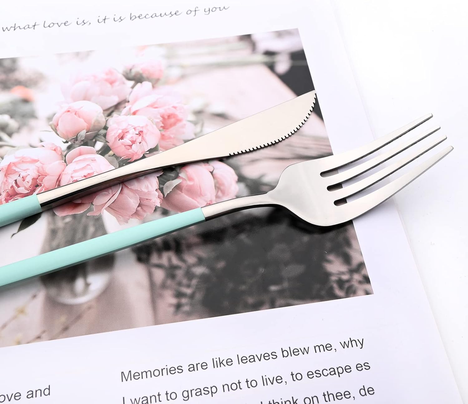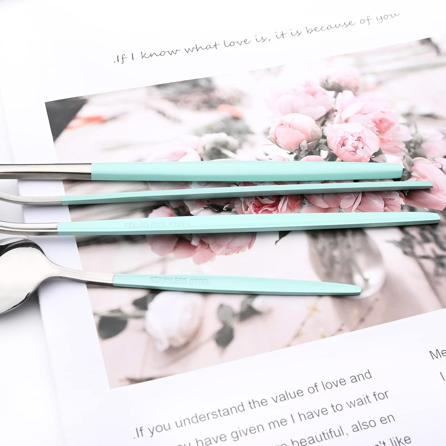 Mirror Cutlery Serving Set, 24-piece 18/0 Stainless Steel Silverware With Mint Green Handle Simple & Modern Tableware For Home Restaurant Dinner, Service For 6 (Mint Green Silver)