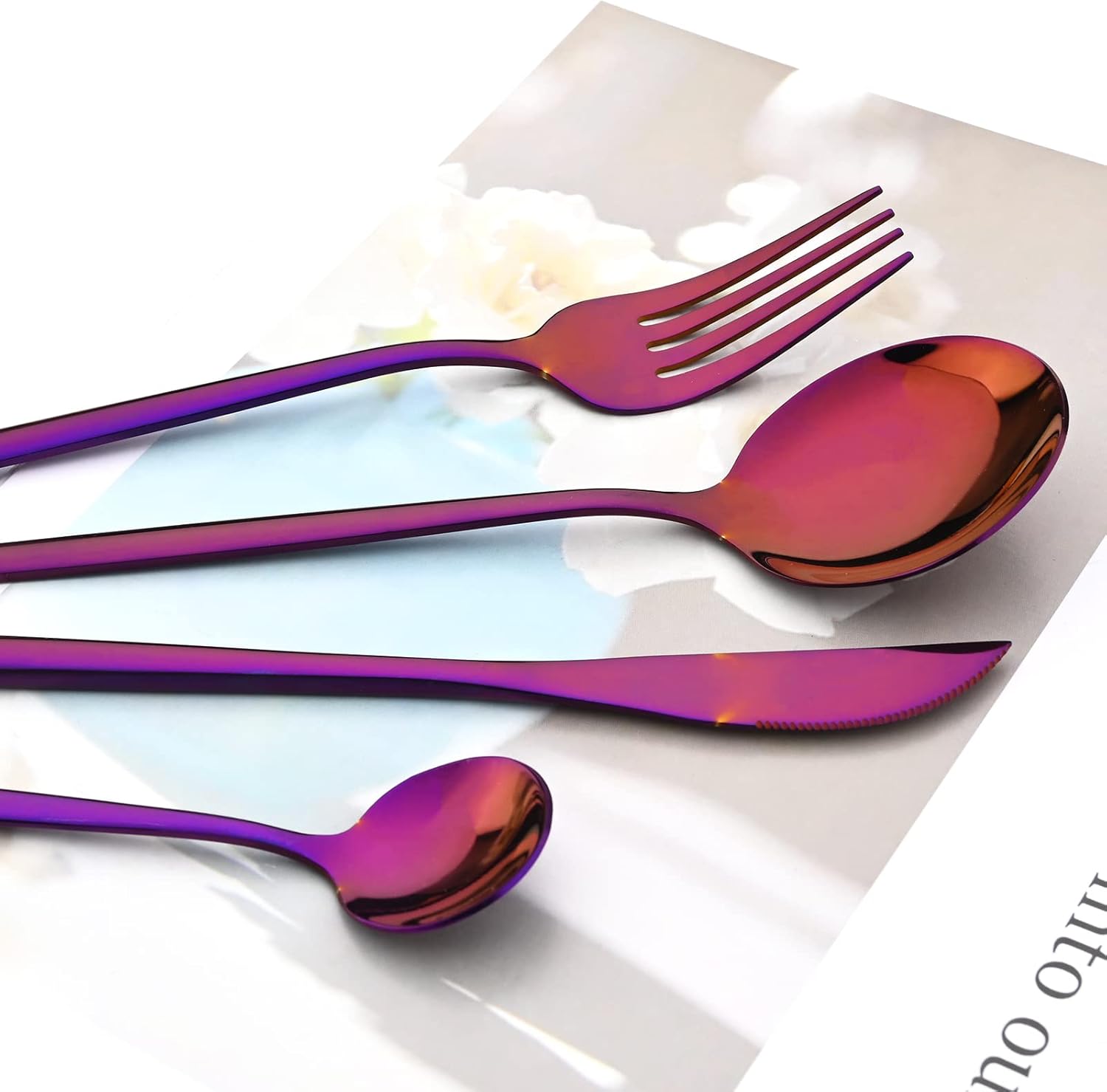 24-Piece Mirror Purple Polished Flatware, 18/0 Stainless Steel Dinnerware Set Include Knife Fork Spoon Teaspoon Cutlery Set For Home Restaurant and Party Service For 6, Dishwasher Safe