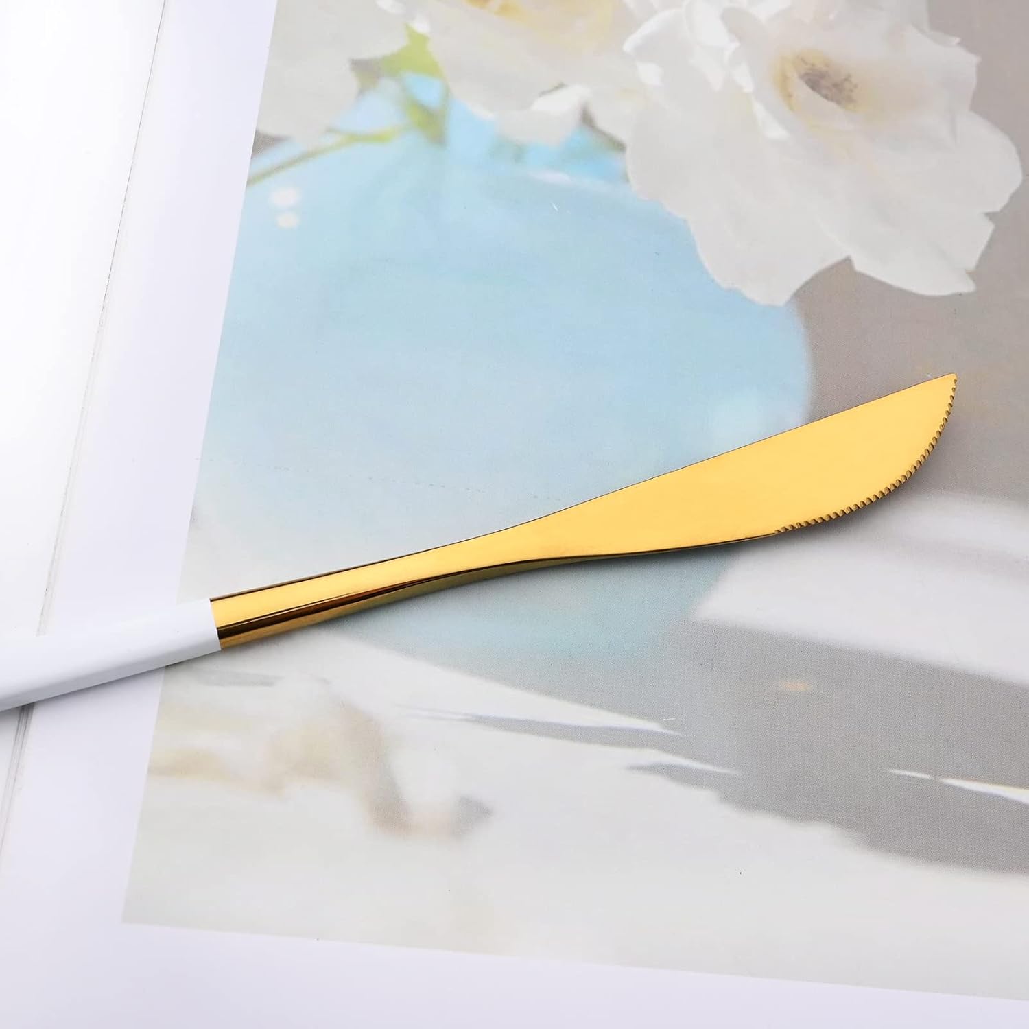 Mirror Cutlery Serving Set, 24-piece 18/0 Stainless Steel Silverware With White Handle Simple & Modern Tableware For Home Party Restaurant Christmas Dinner, Service For 6 (White Gold)