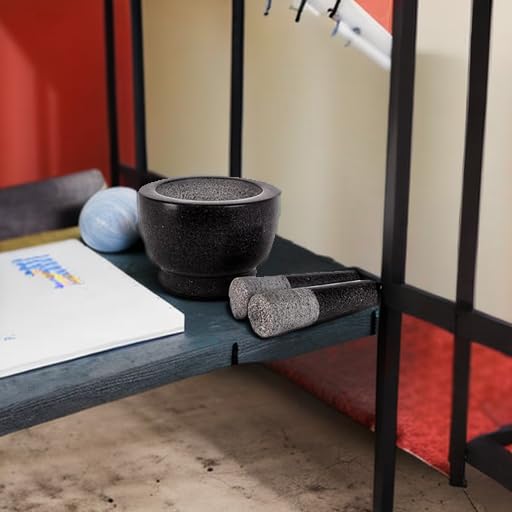 Mortar and Pestle Set,Heavy Duty,Unpolished Granite,6Inch-2Cup Capacity,Grinder for Spices and Seeds,Grinding,Crushing and Mashing Spices,Nuts,for Guacamole,Garlic Sauce,Black..