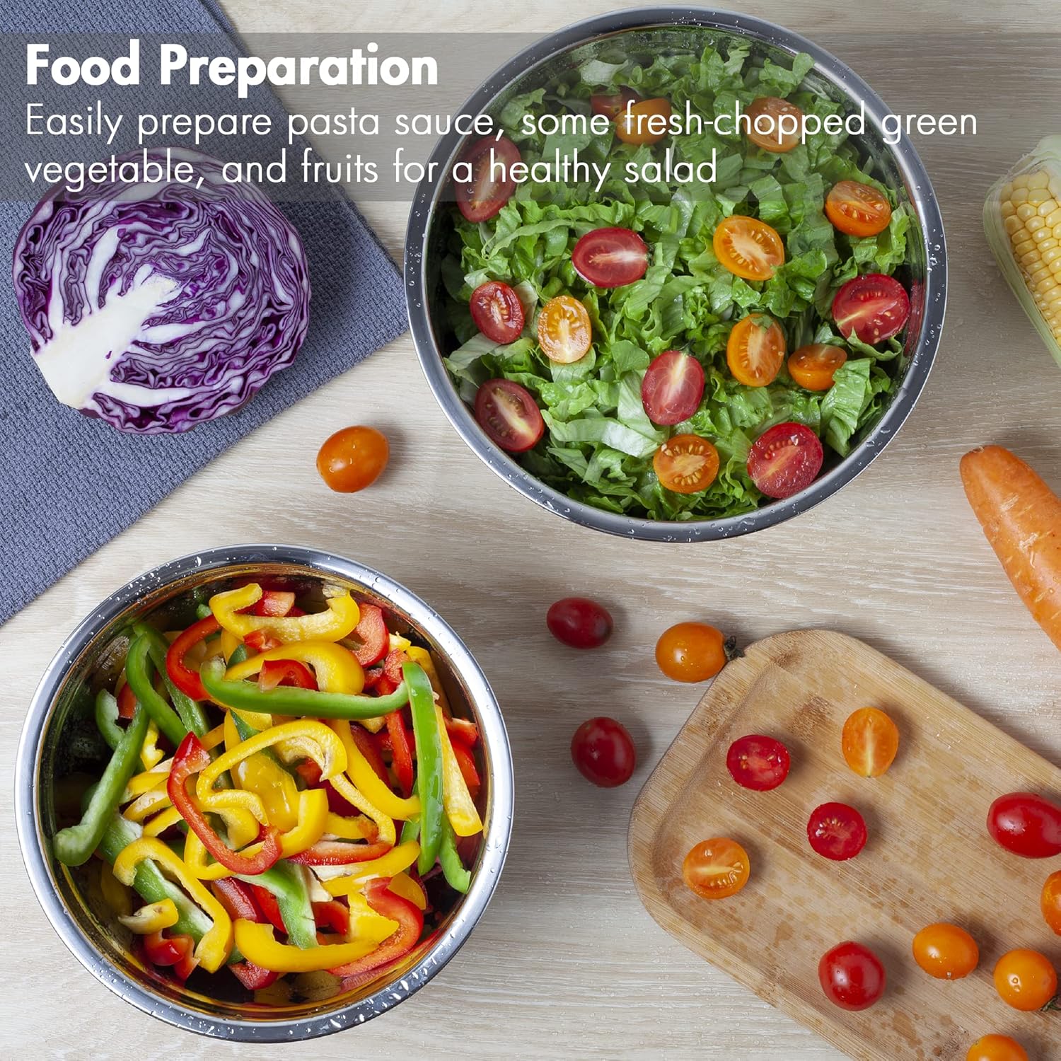 • Durable and High Quality — Made of high-quality stainless steel for lasting use, which is resistant and rustproof. These mixing bowls are dishwasher safe, more convenient for you and your family.