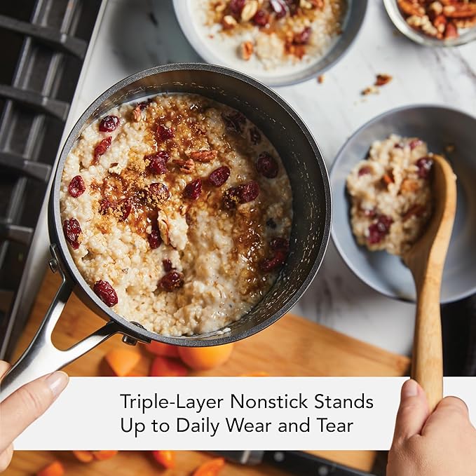 • PREMIUM FOOD RELEASE: KitchenAid hard anodized saucepan is finished with triple layer nonstick to stand up to daily wear and tear