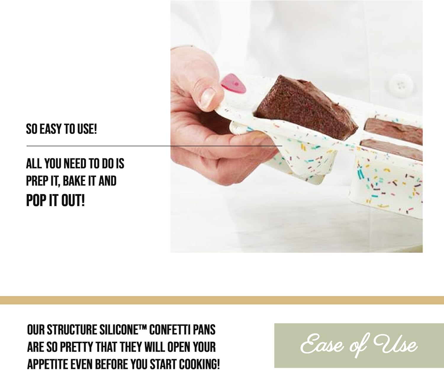 • EFFORTLESS BROWNING & EASY RELEASE – Flexible, non-stick silicone delivers perfect browning while ensuring brownies, cakes, and desserts release effortlessly. Lightly grease and cool for 5–10 minutes for perfectly shaped bakes, no paper liners required. Ideal for intricate baking molds, decorative brownies, or shaped treats.