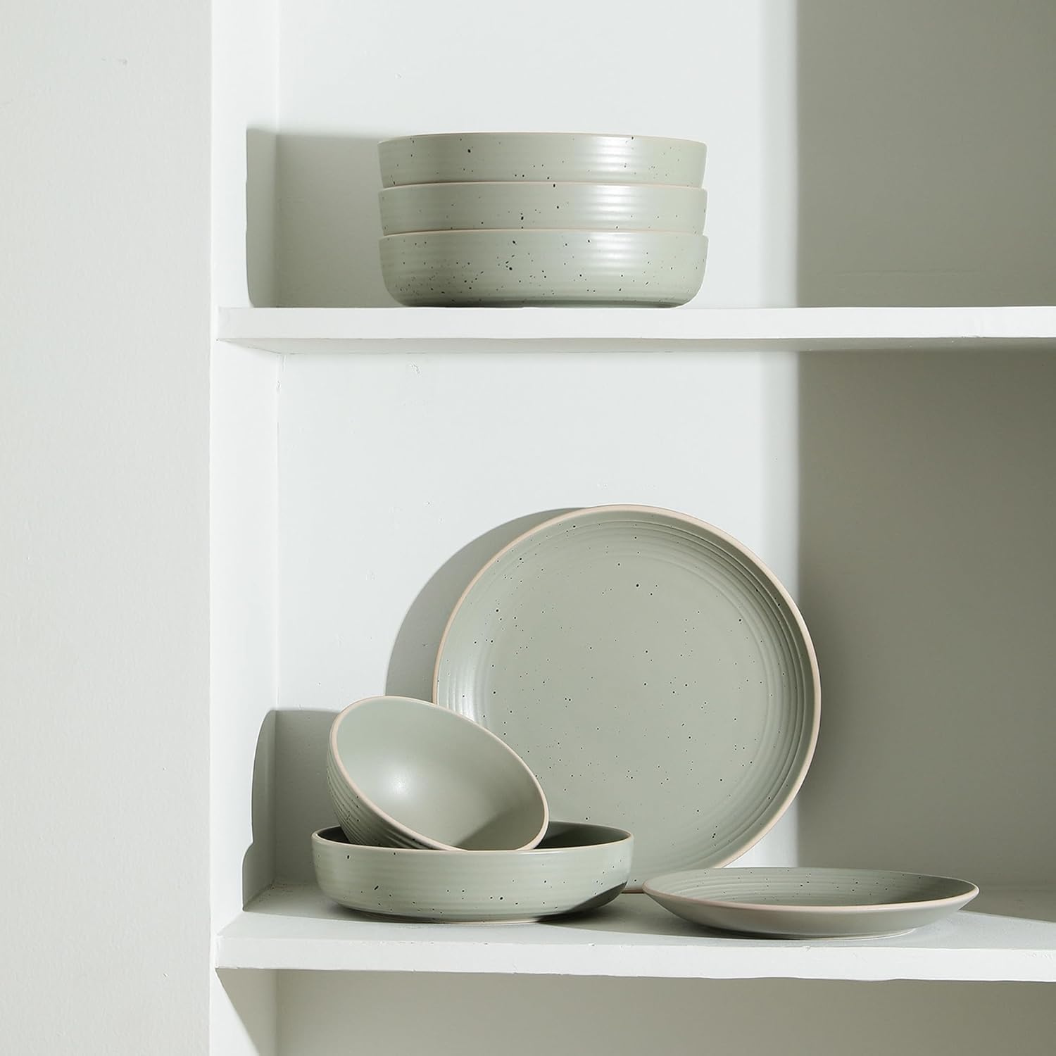 Stone Lain Lauren Stoneware, Rustic Plates and Bowls Set, Dinnerware, Service for 4, Speckled Green, Dishwasher & Microwave Safe, 16-Piece