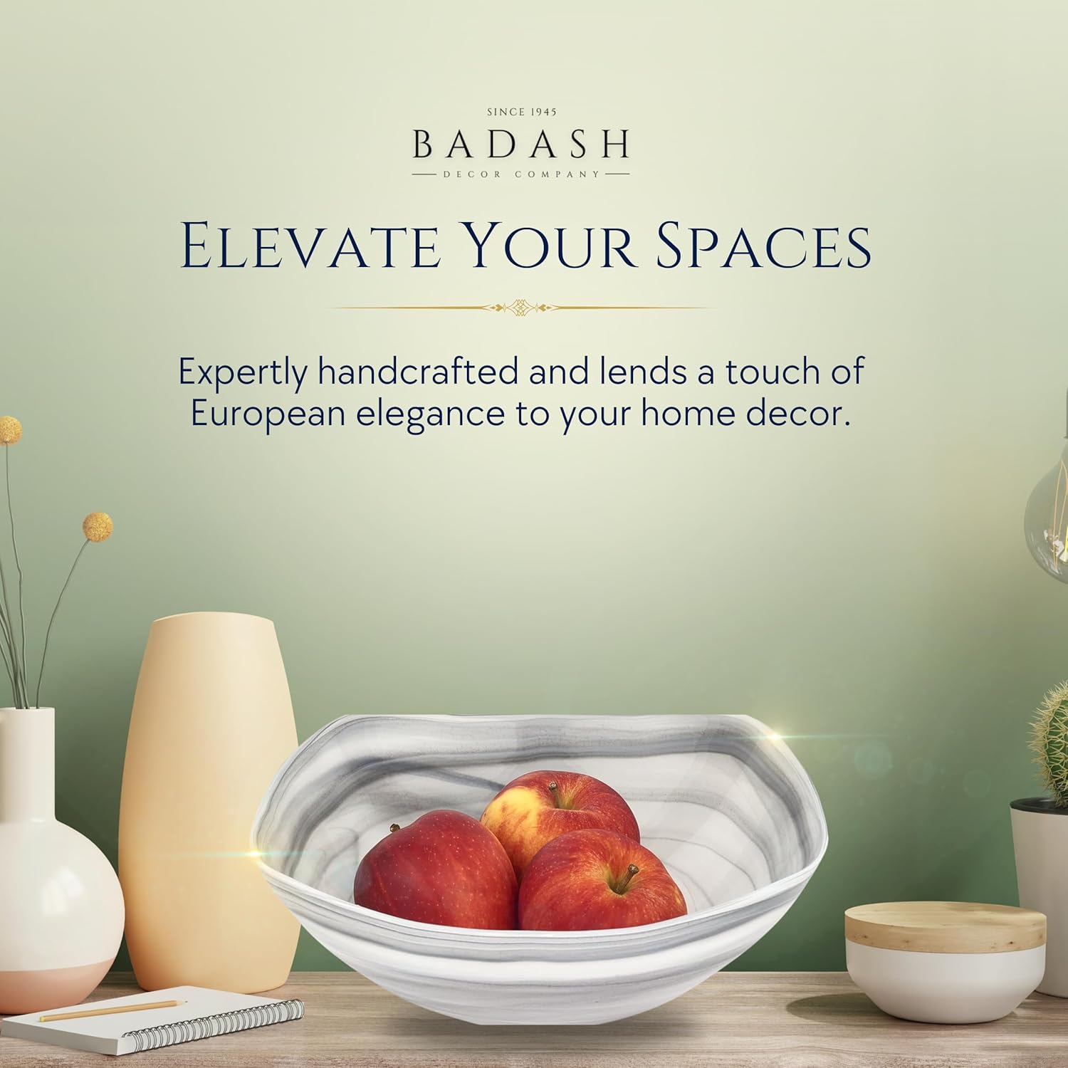 Badash Decorative Glass Serving Bowl, Alabaster Glass Centerpiece Fruit Bowl, Home Décor Table Accent Bowl, 10” Diameter, Gray