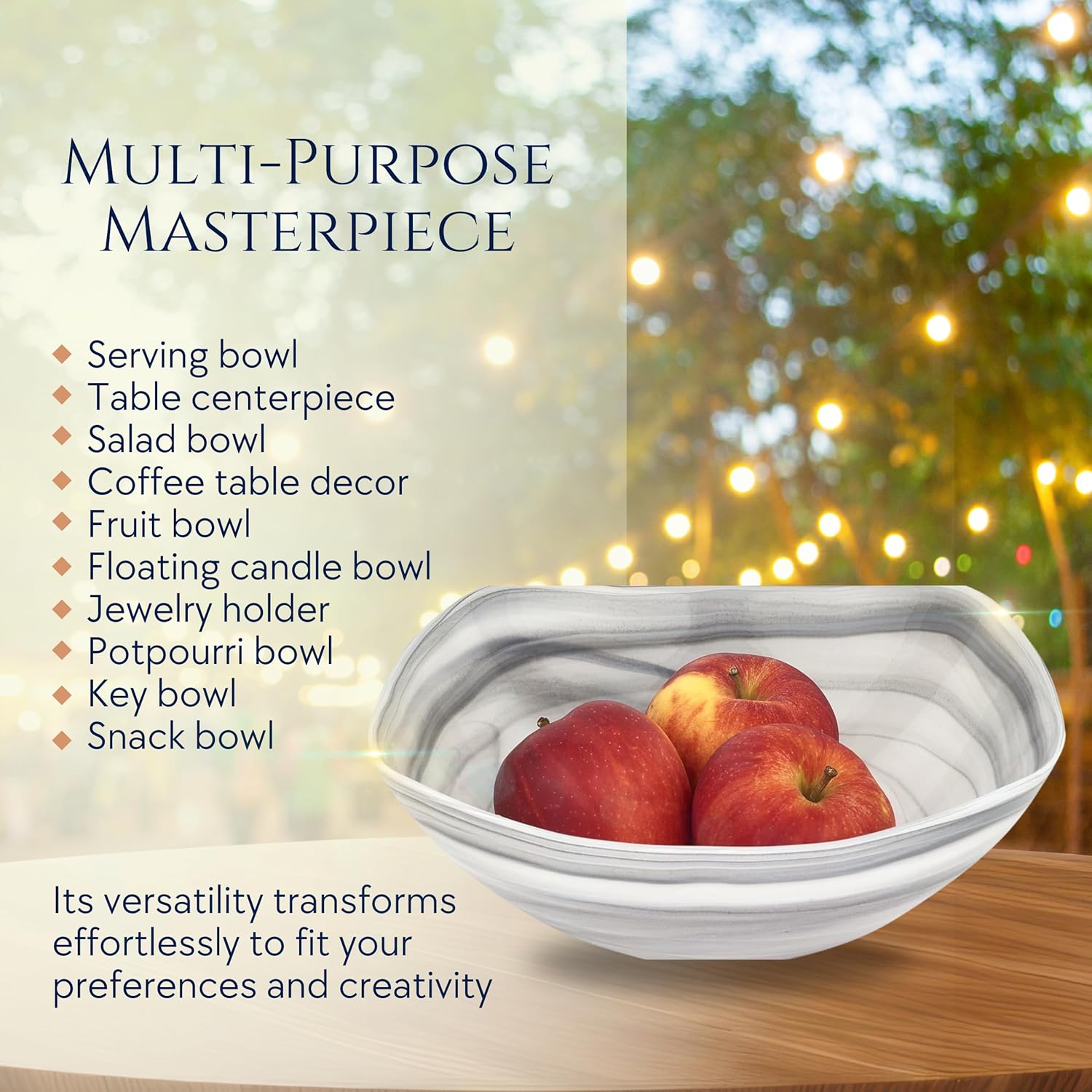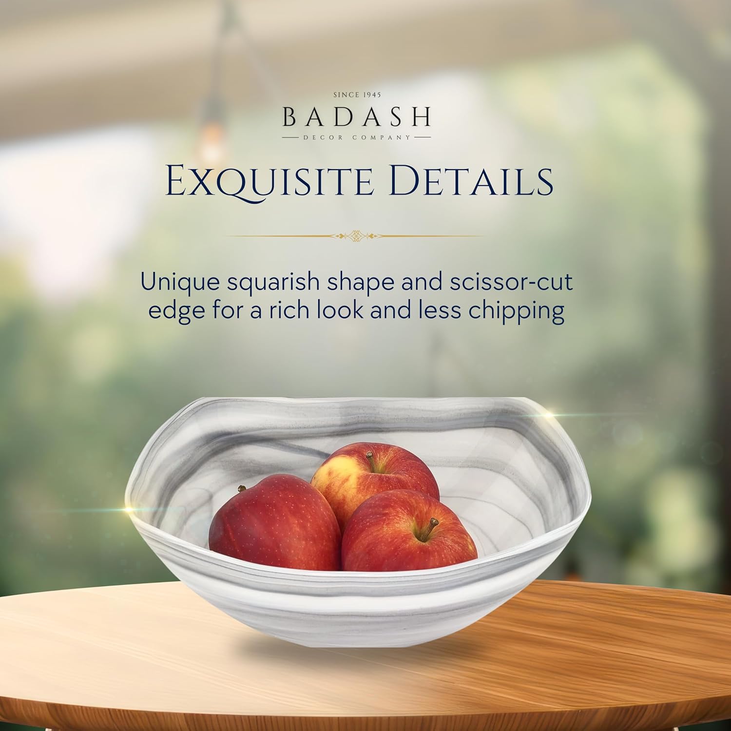 • Exquisite details - This white and gray glass bowl decor features a unique squarish shape and a scissor-cut edge for a rich look and less chipping. The soft shades of gray and sharp angles make it an eye-catching accent. The wide 10 inch diameter will accommodate an assortment of knick-knacks or some floating candles.