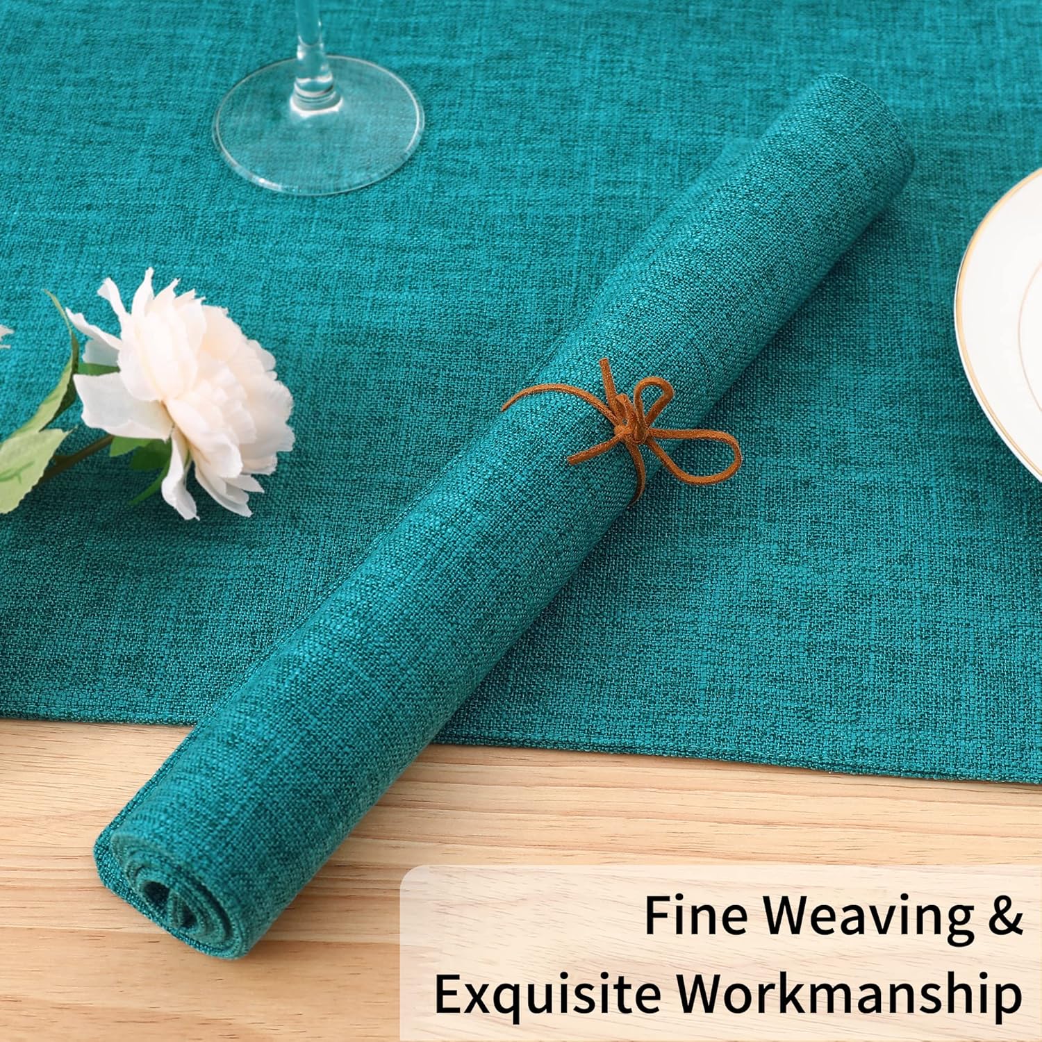 Homaxy Cloths Placemats for Dining Table Set of 4, Heat Resistant Washable Cotton Linen Blend Table Mats, Easy to Clean Place Mats for Indoor Outdoor Party Kitchen Decoration, 13" x 19", Teal