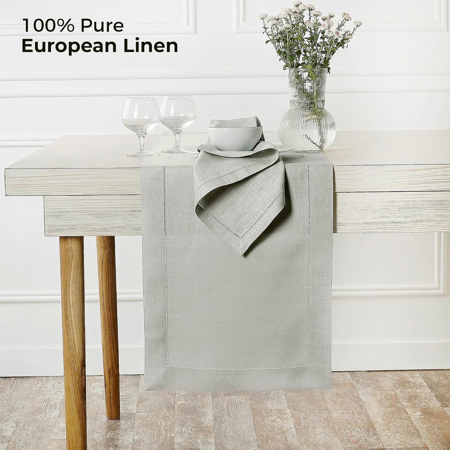 • PREMIUM EUROPEAN LINEN - This silver grey table runner is made from 100% European flax linen, not blended with cheaper materials like cotton or polyester. Pure linen is an exceptionally durable midweight, hypoallergenic (good for people with allergies) fabric which outperforms cotton in tensile strength and abrasion resistance.
