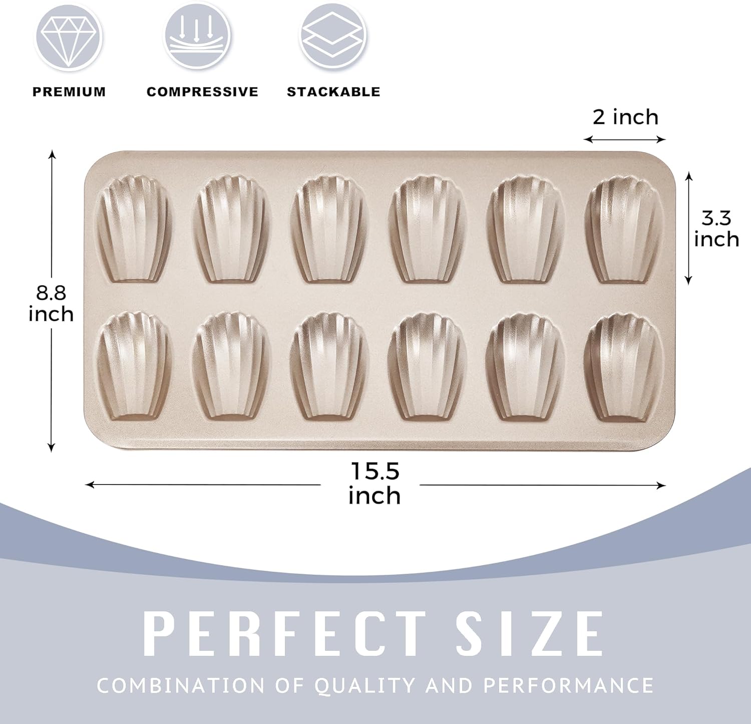 • EXQUISITE TABLE ART - The fact that your madeleine pan set is not only a practical baking tool but also an affordable table art. Great kitchen utensils should be made with quality and aesthetics in mind. Our unique champagne gold baking dish is the perfect combination of them, adding delicate aesthetics to your dining table.