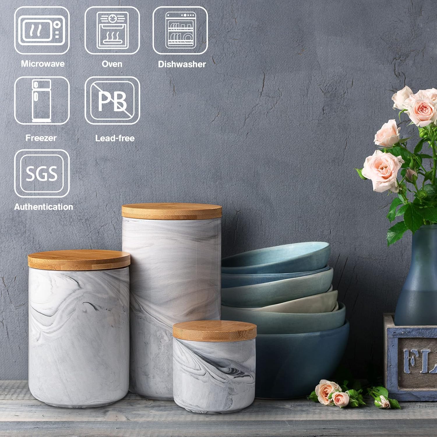 • [Airtight Ceramic Kitchen Canister]: Made of porcelain, lead-free, and lightproof.The silicone seal ring of the wood lid makes the white kitchen canister air-tight. To be sure they’re airtight, you’ll hear that satisfying “pop” when you open the sugar canister!