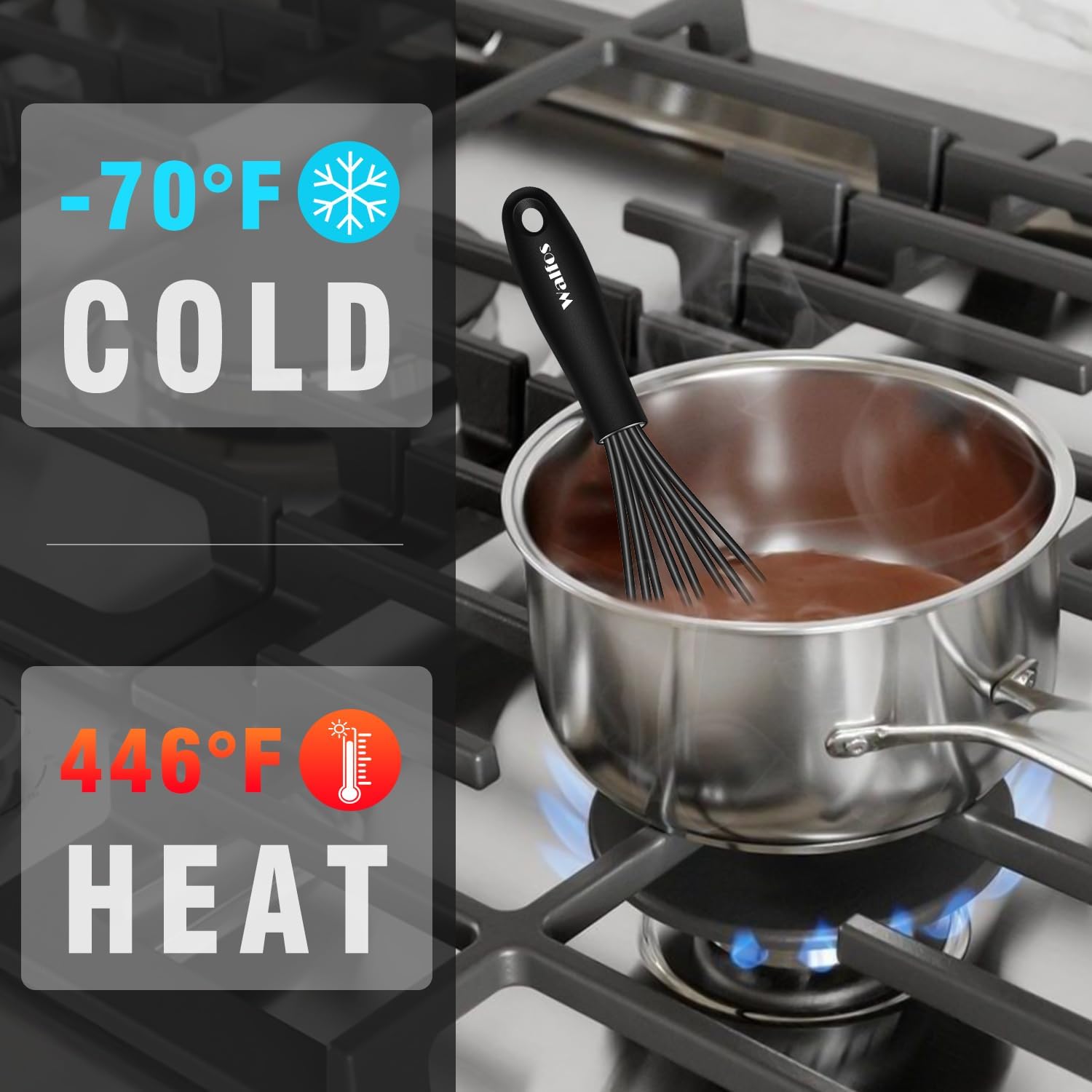 Walfos Whisk 5+7in/12cm+17cm Mini Whisk,Silicone Whisks Non Scratch Heat Resistant (480°F). Nice for stirring individual eggs and mixing small amounts of powder and sauce.Dishwasher Safe.Black