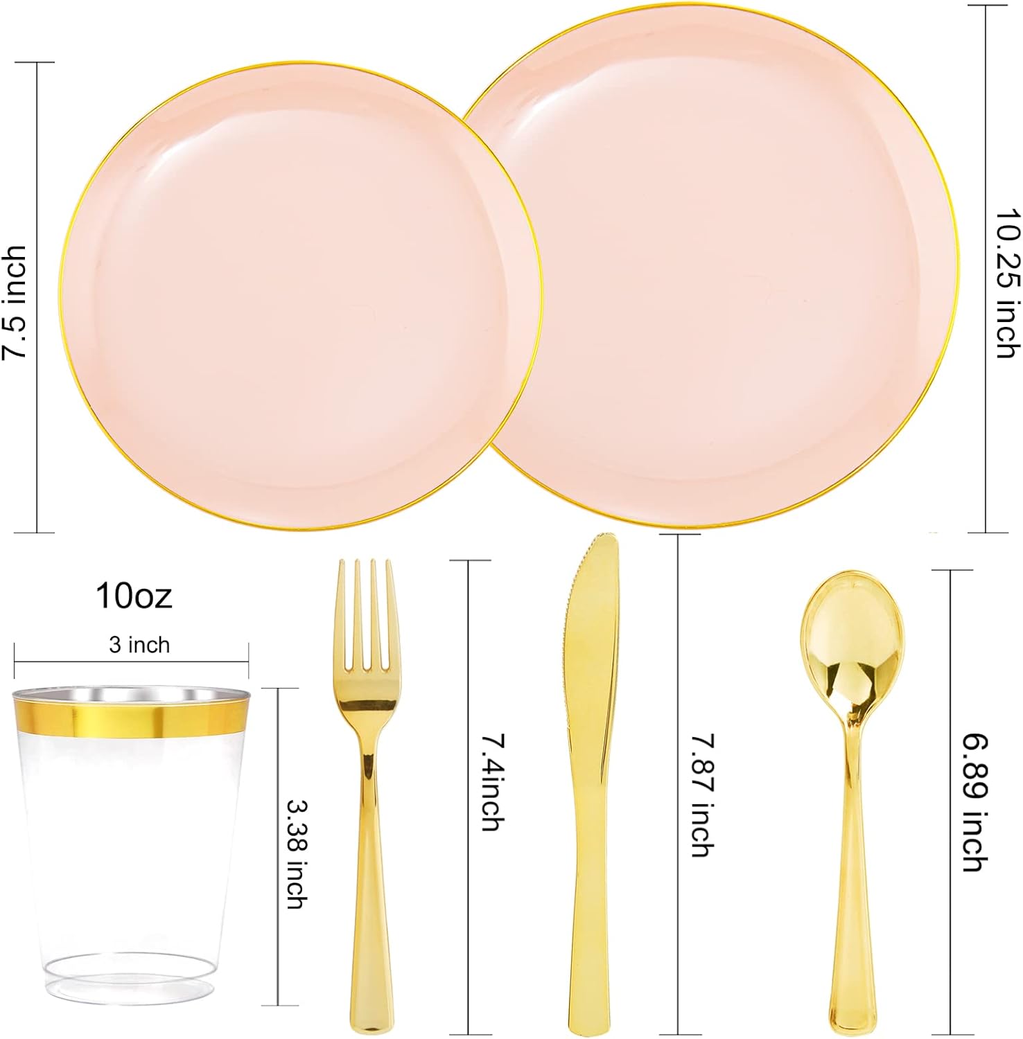 • FOR YOUR LOVE:We have always been committed to ensuring the interests of our customers as our priority!If you have any questions about these pink and gold plastic plates or disposable gold silverware, please feel to contact us, we will provide several solutions for you to choose.In addition, I hope that customers can give us some suggestions through email, and we will sincerely listen to your opinions and take corresponding rectification measures. Thanks for your help and have a nice life!