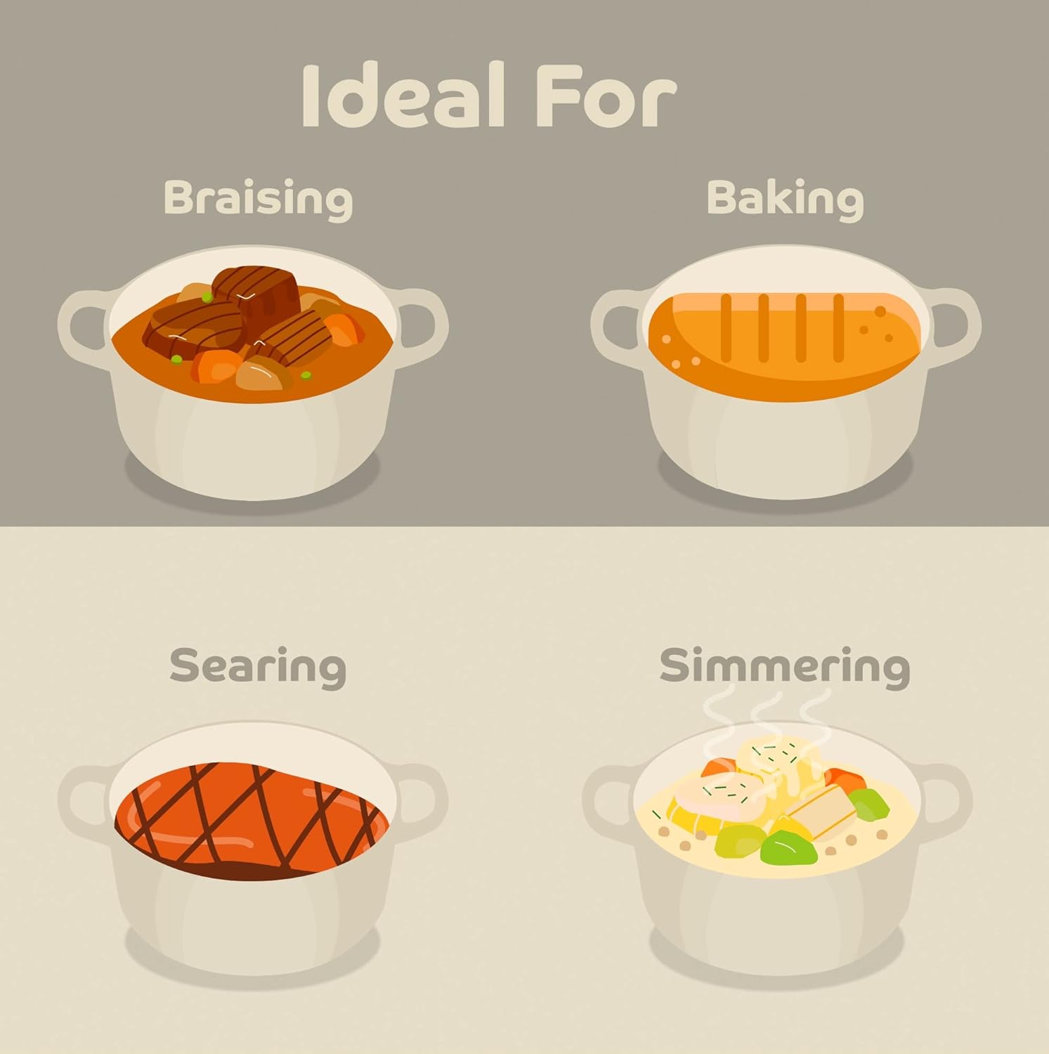 • MULTI-FUNCTION CAST ENAMEL COOKWARE. This dutch oven for bread baking is also perfect for simmering, stewing, grilling, frying, braising, roasting, pickling, and heating chilled food.