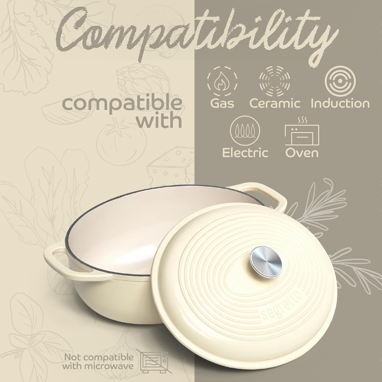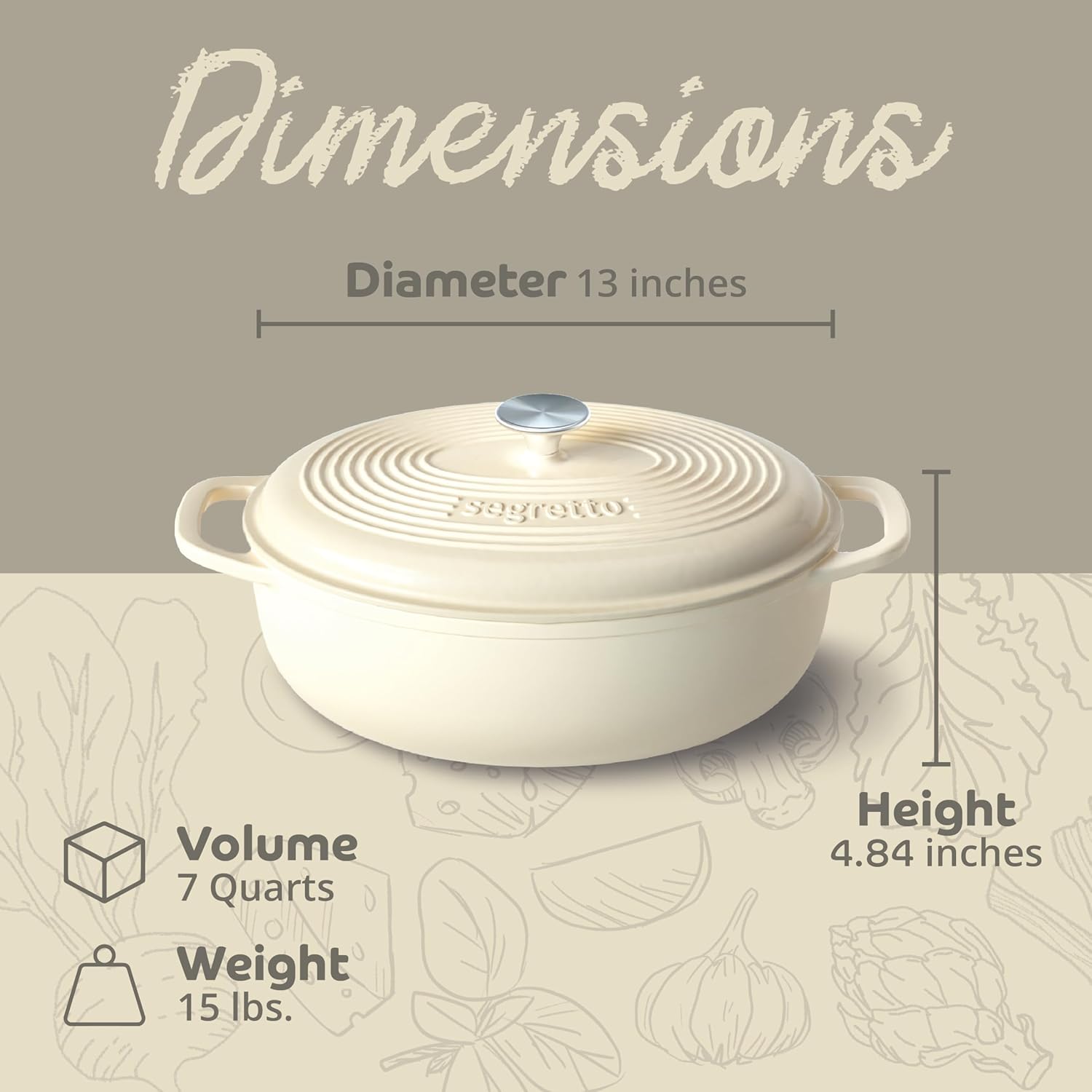 Segretto Cookware Enameled Cast Iron Oval Dutch Oven, 7 Quarts White