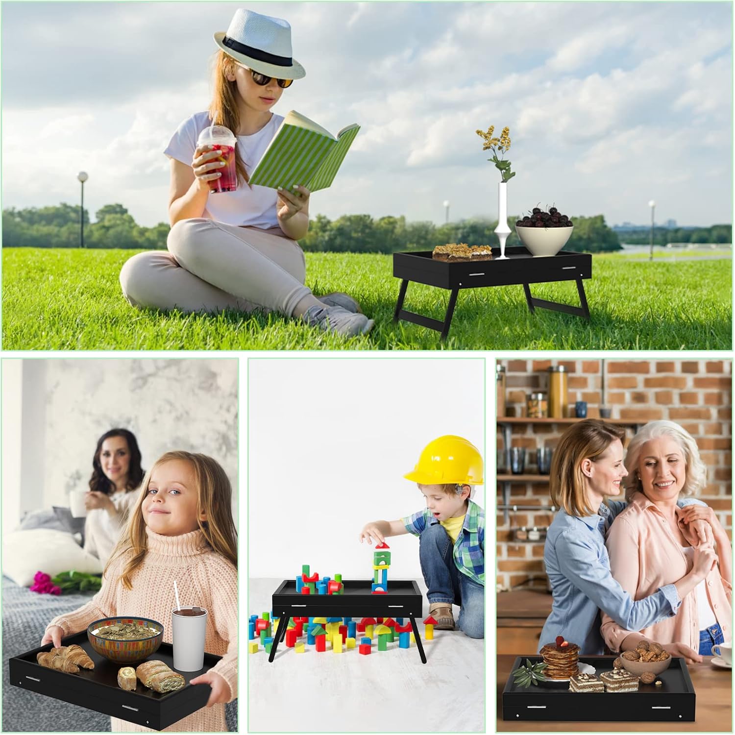 Artmeer Bed Tray Table Breakfast Food Tray with Folding Legs Serving Tray for Laptop Desk, Sofa,Platters,TV,Snack,Eating Tray(Black, Medium)