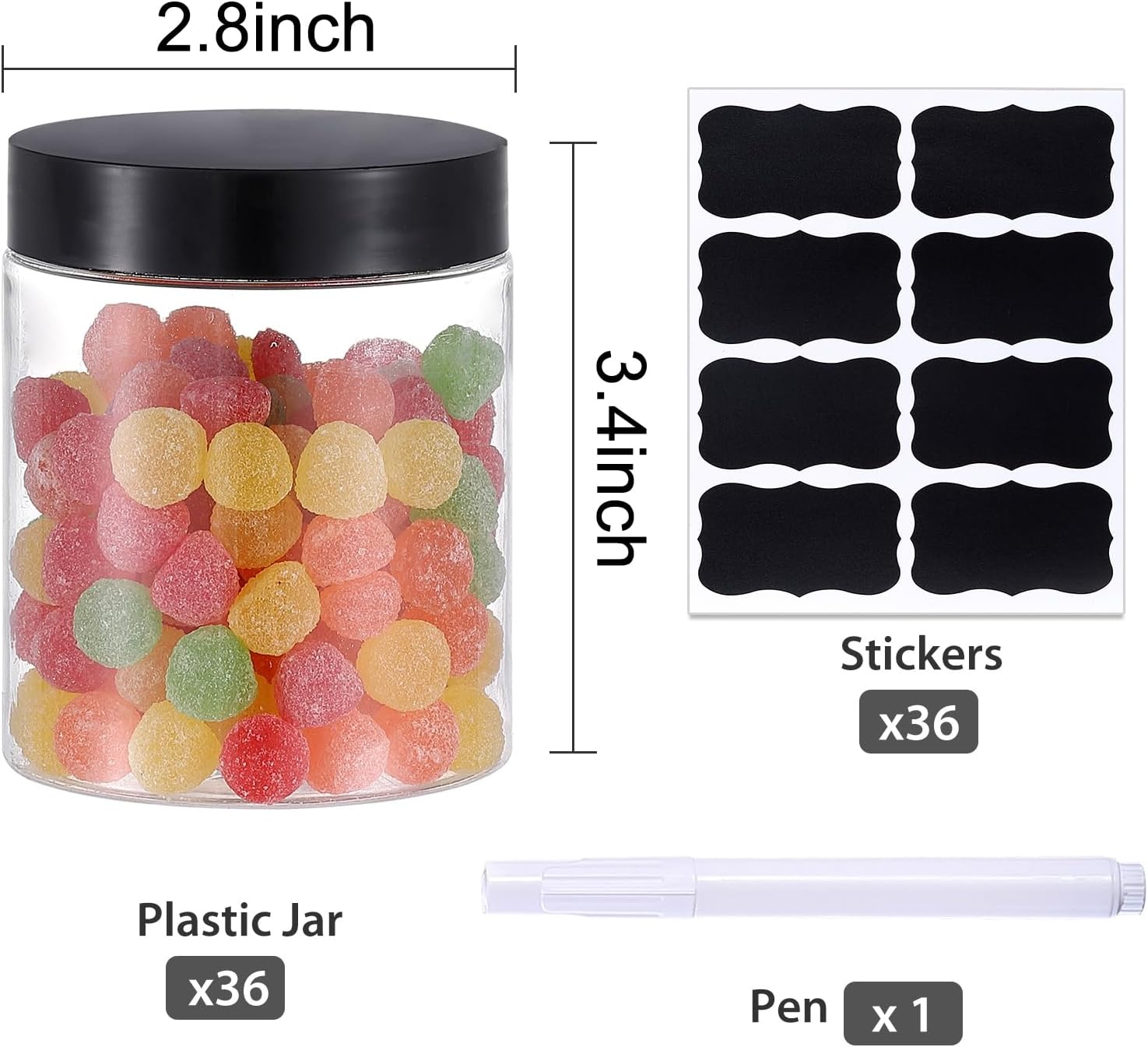 36PCS 8OZ Plastic Jars with Screw On Lids,Labels Refillable Empty Round Slime Containers for Storing Dry Food, Honey Jam, Cream, Butter, Lotion (Black)