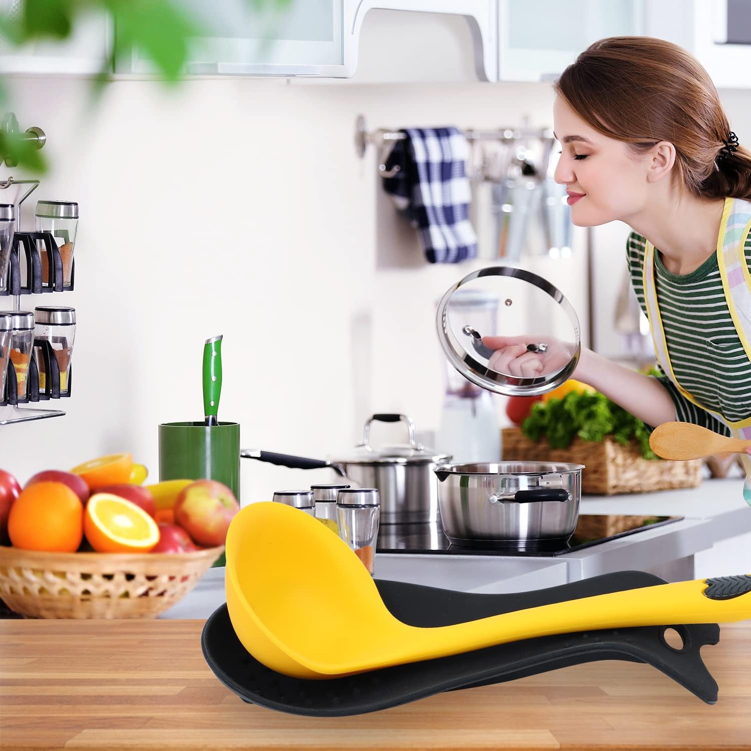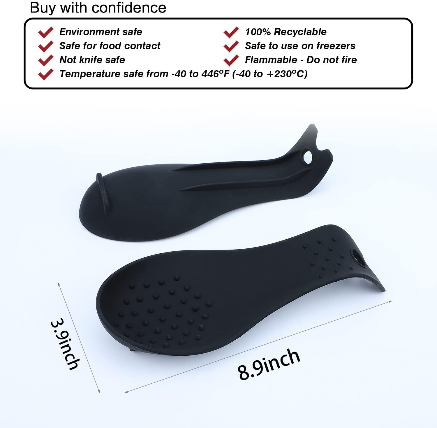 • The spoon holder are made of 100% food standard silicone, heat resistant up to 550 degrees F, dish washer safe