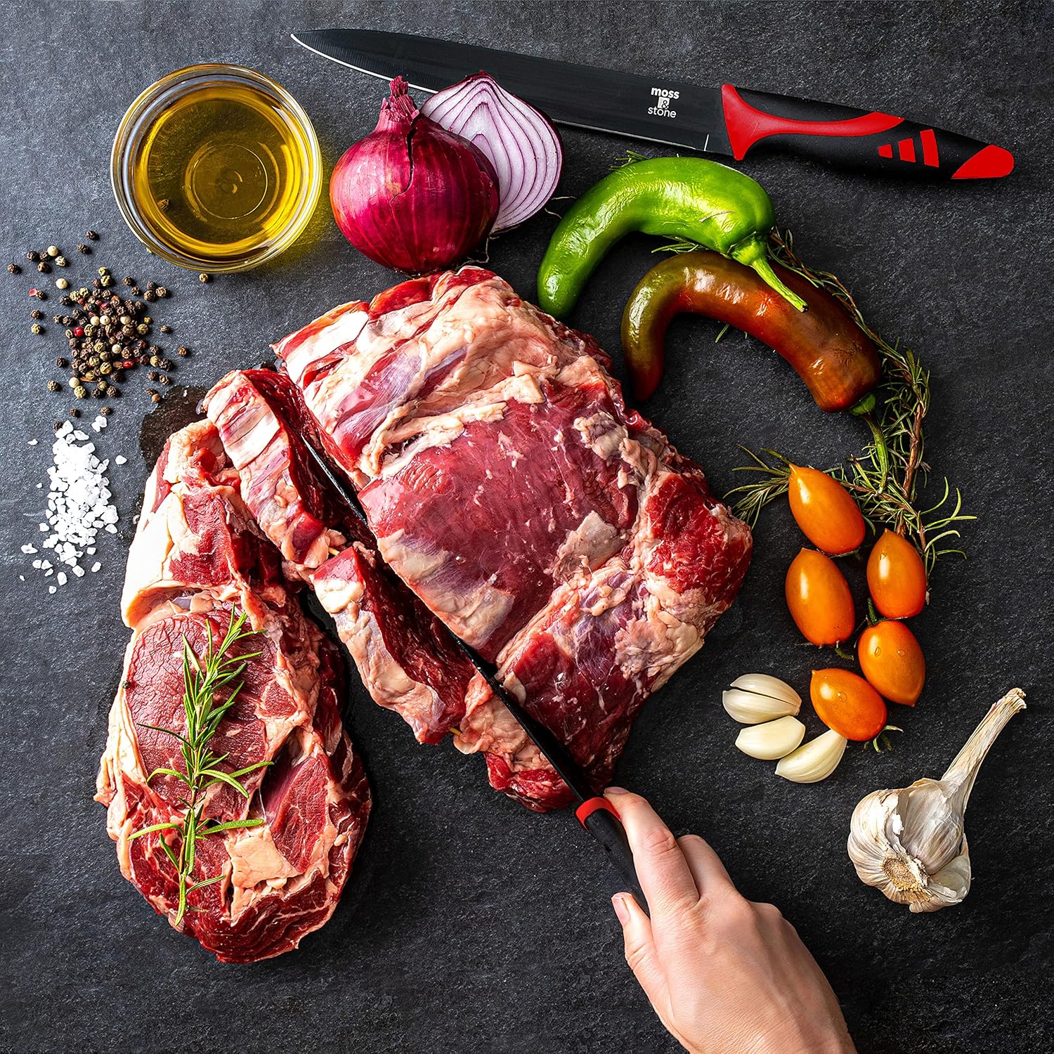 • Easy Slicing & Dicing: Moss & Stone stainless steel kitchen knife set makes slicing, chopping, and dicing easy while helping reduce accidents. All kitchen knives are dishwasher-safe for cleanup