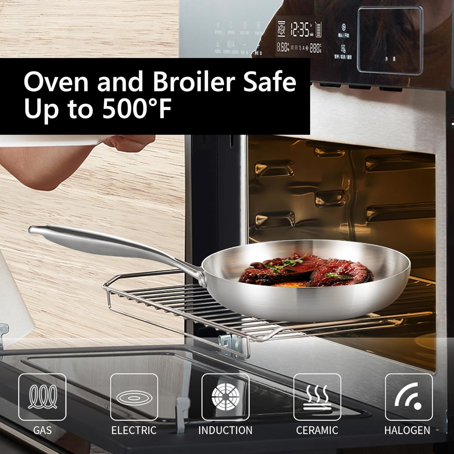 • 【Durable & Effortless to Maintain】 Engineered for long-term reliability, our tri-ply pan withstands daily cooking and high heat — oven-safe up to 500°F. After dinner, cleanup is easy: wipe, rinse, or place in the dishwasher. Built to handle years of meals, from weekday dinners to weekend feasts.