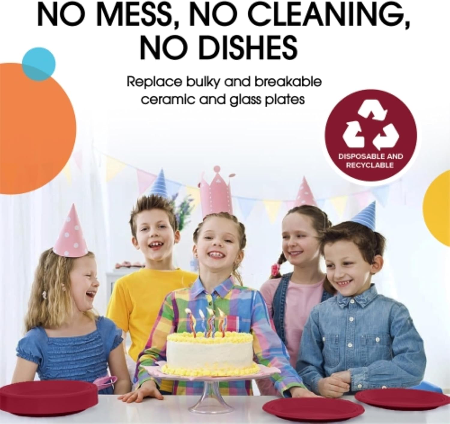 • Health & Safety: Our burgundy plastic plate set is made with food-safe materials, ensuring the health and safety of your guests. Whether it's for a birthday party or a picnic, you can trust that these disposable plastic plates meet the highest standards of hygiene, providing peace of mind for you and your loved ones.