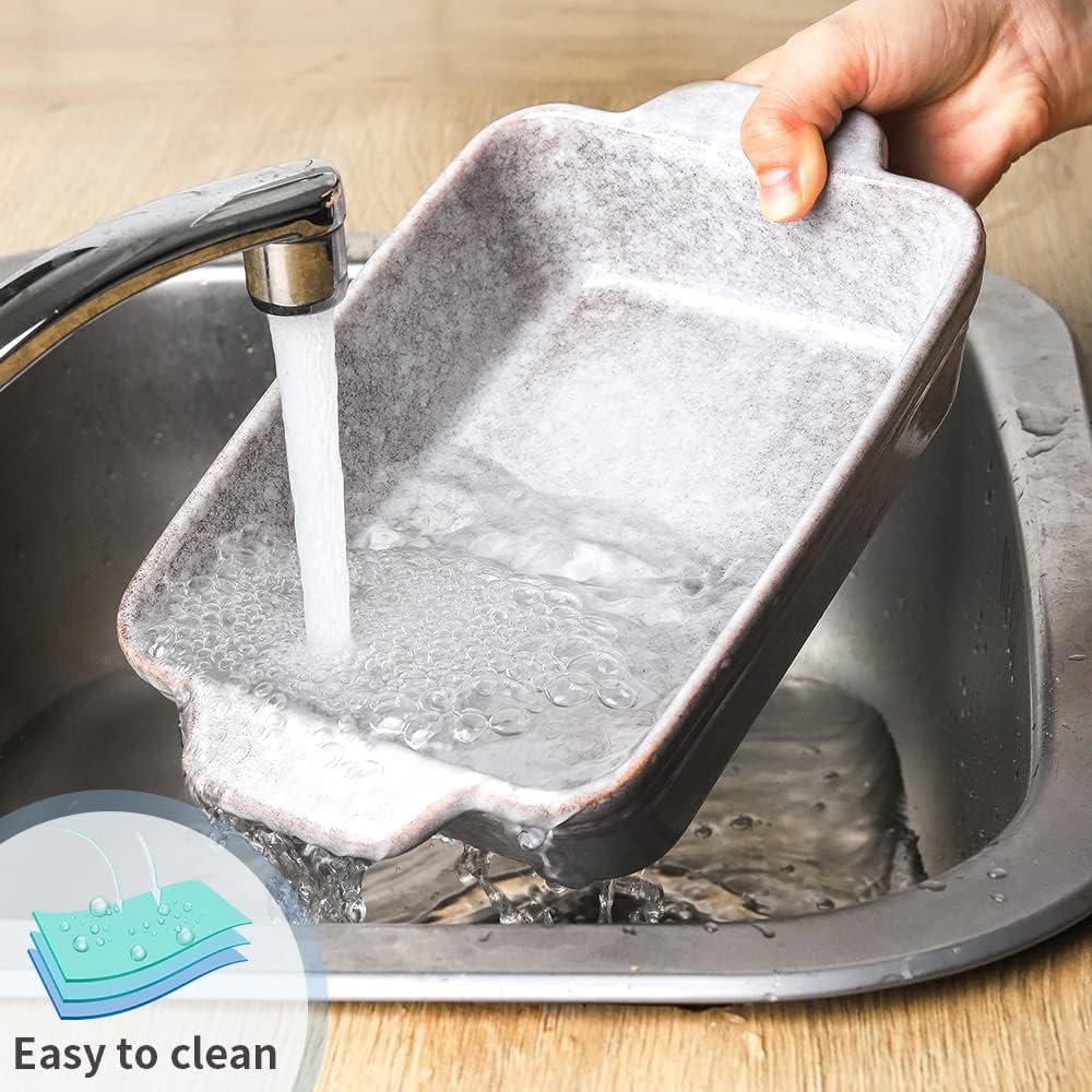 Bakeware Set, Ceramic Baking Dish Set, Rectangular Casserole Dish Set, lasagna Pan, Baking Pans Set for Cooking, Cake Dinner, Kitchen, 9 x 13 Inches, Reactive Glaze 3-Piece (Variable Grey)