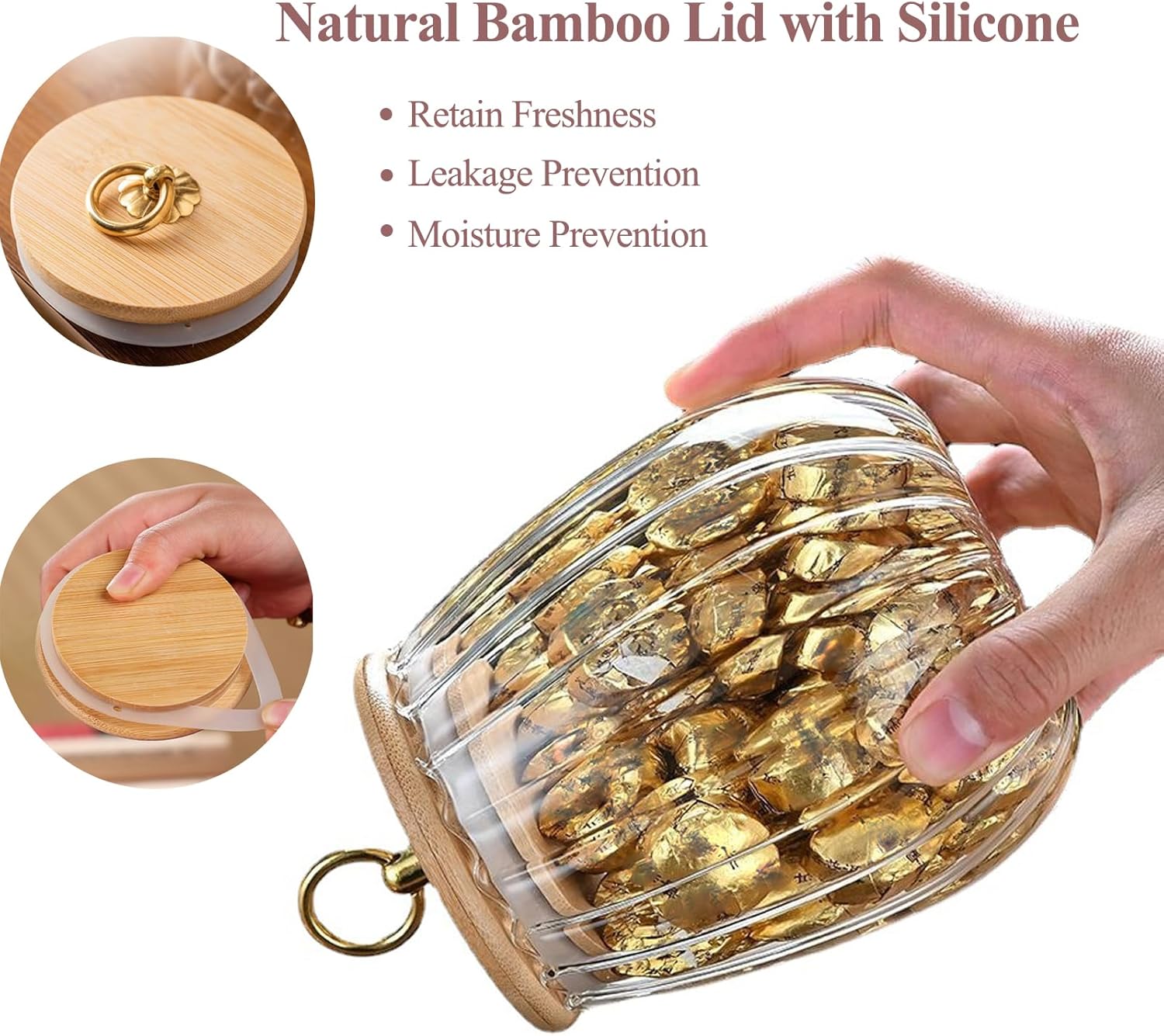 Viovian 25FL OZ Glass Candy Jar with Wood Lid Clear Decorative Vintage Glass Storage Jars Canister for Food Coffee Beans Nuts Sugar Cookies 750ml
