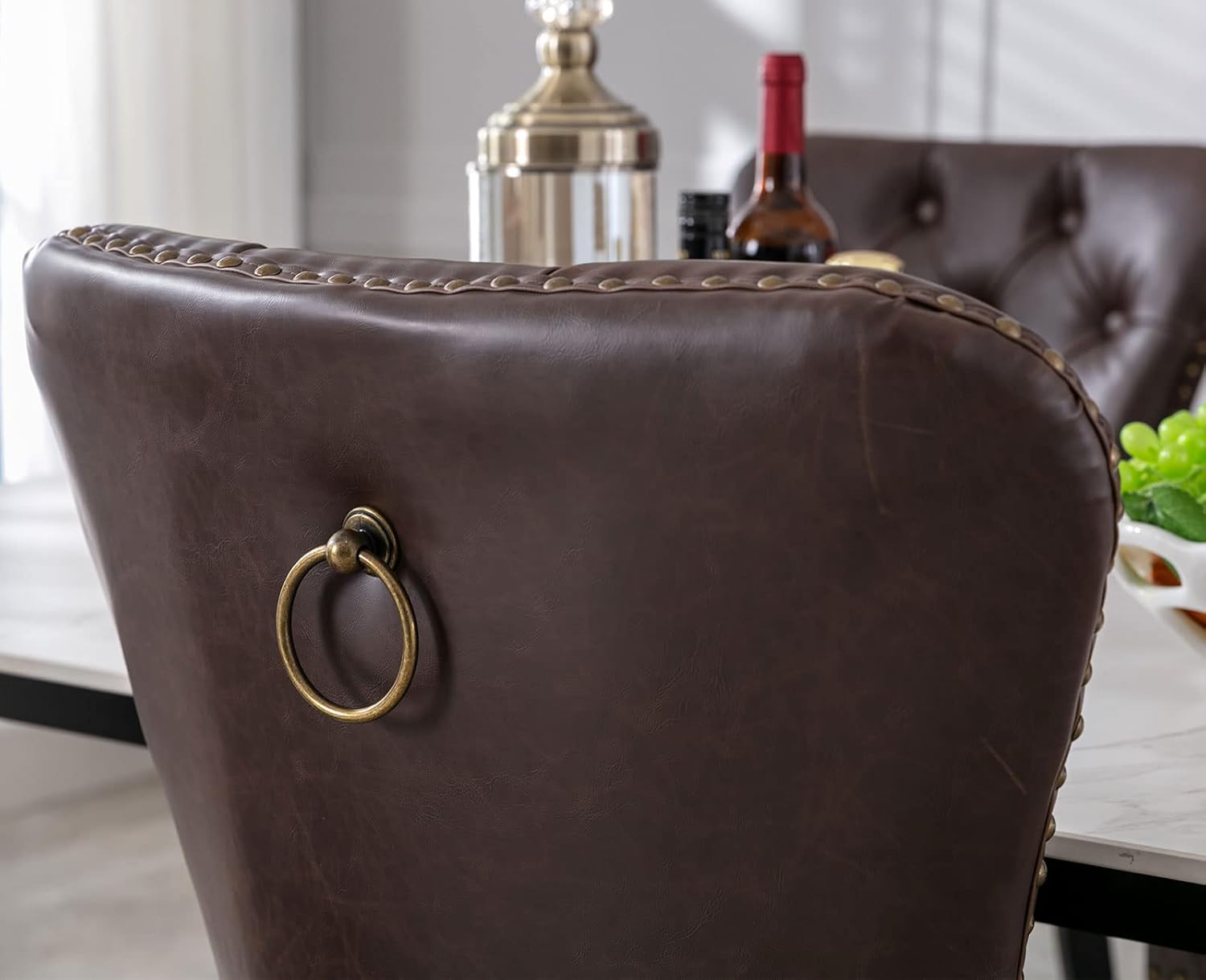 PU Leather Dining Chairs Set of 2 Mid Century Modern Tufted Chairs Armless Rubber Wood Vintage Chairs Upholstered Nailhead Side Chair for Kitchen/Cafe Decor Furniture, Coffee with Pull Ring