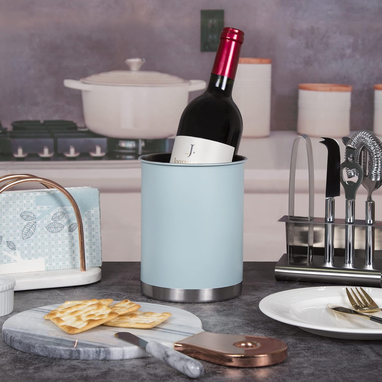 • Multi-Purpose Design: More than just a cooking utensil organizer, it can also store other items or be used as a wine bucket or for chilling beer with ice cubes, adding both function and style to your kitchen and dining occasions