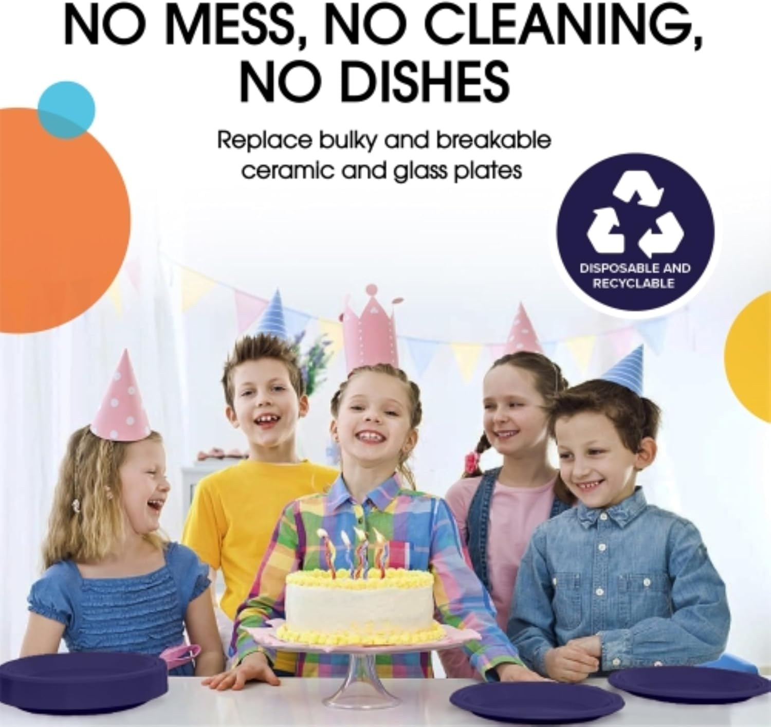 • Health & Safety: Our deep purple plastic plate set is made with food-safe materials, ensuring the health and safety of your guests. Whether it's for a birthday party or a picnic, you can trust that these disposable plastic plates meet the highest standards of hygiene, providing peace of mind for you and your loved ones.