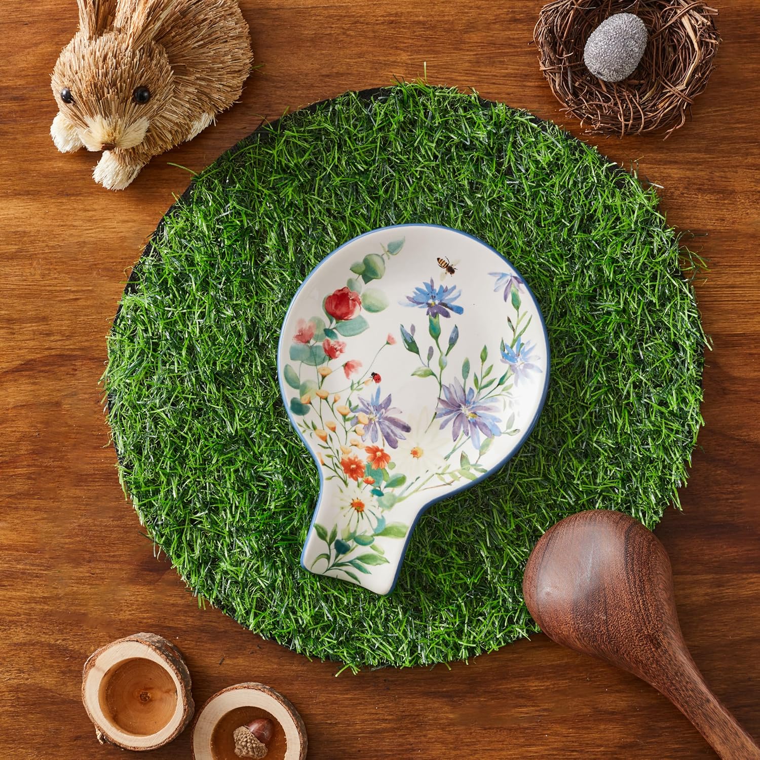 Bico Summer Provence Spoon Rest for Stove Top, Ceramic Spoon Holder for Kitchen Counter, Easy to Clean Coffee Spoon Rest Dishwasher Safe, Kitchen Cooking Utensil Rest for Ladles Spatula