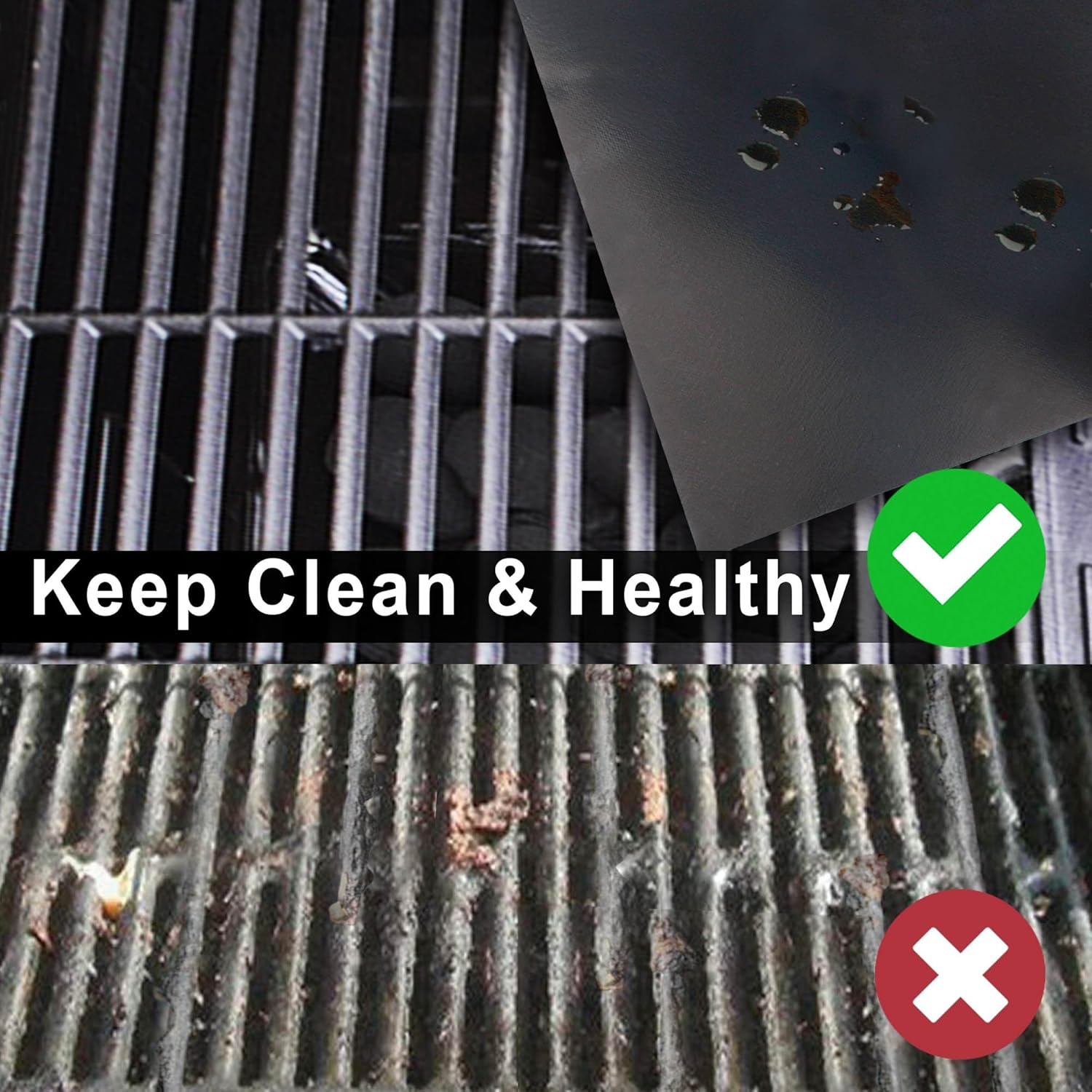 • 【Safe to Use & 100% Nonstick】: Easy to clean, no PFOA or other dangerous chemicals; Safe, reusable, can stay in brand-new condition for many years, freely cut to size; Just put in dishwasher or rinse with soap water, done! Also ideal for campground/park grills;