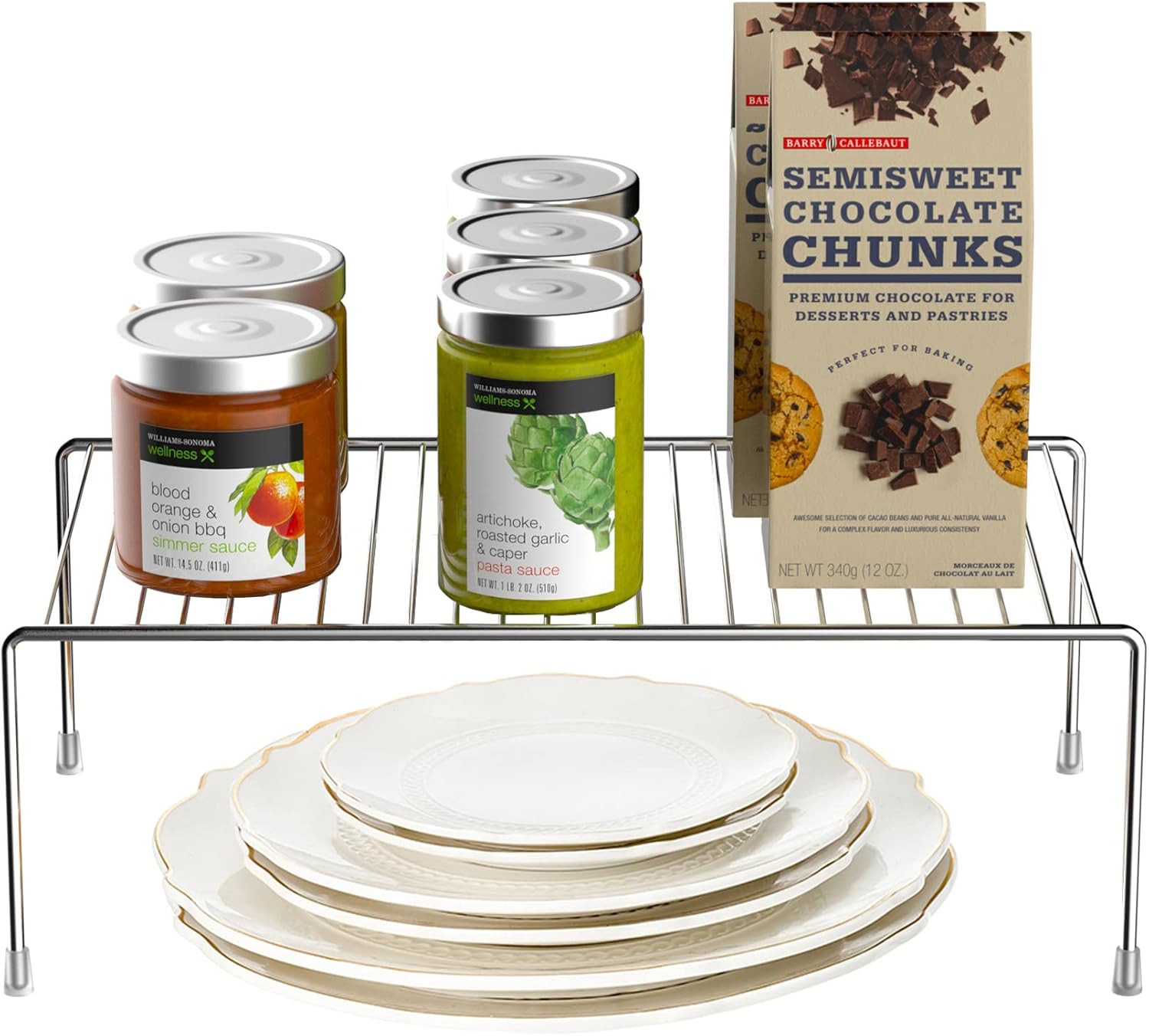 iPEGTOP Set of 6 Large (15.7 x 9.4 Inch) Kitchen Cabinet Organizer Shelf, Wire Freezer Storage Shelves Rack, Rustproof Steel Metal Shelf Riser for Dish Plates Pantry Cupboard Organization, Chrome