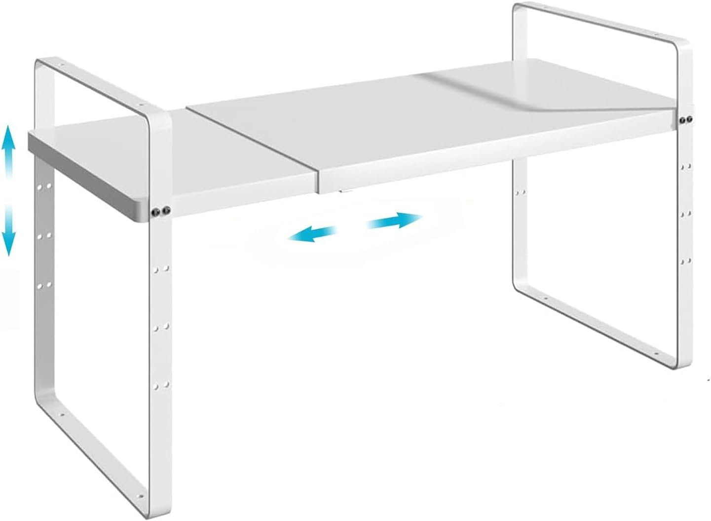 Redrubbit Expandable Cabinet Shelf Organizers, Stackable Kitchen Counter Shelves Spice Rack for Kitchen Bathroom Pantry Cupboard Desk Home Office, White-Large