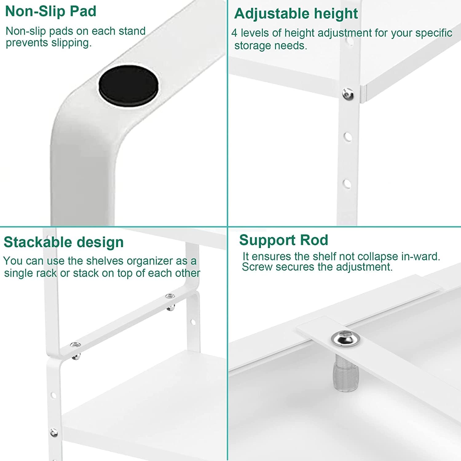 • 【Expandable and Stackable Design】 - The length and height of this shelf can be adjusted to your desire. It can vary from 16.5 inches to 27.5 inches in length depending on how you want to arrange your space.