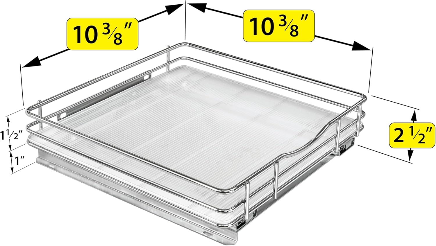 • OUR UNIQUE 1/8” THICK HEAVY-DUTY POLYMER TRAY securely locks in place safeguarding your cupboards against spills and prevents small items from falling over