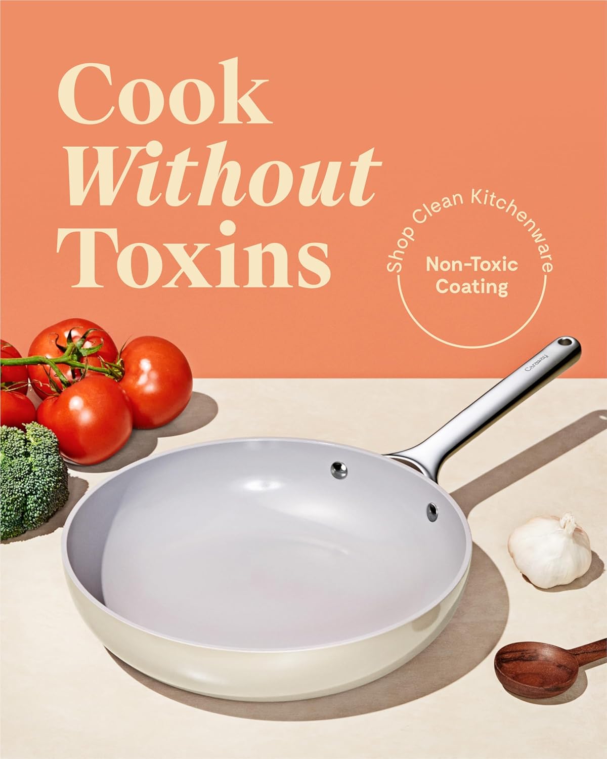 Caraway Nonstick Ceramic Frying Pan (2.7 qt, 10.5") - Non Toxic, PTFE & PFOA Free - Oven Safe & Compatible with All Stovetops (Gas, Electric & Induction) - Cream